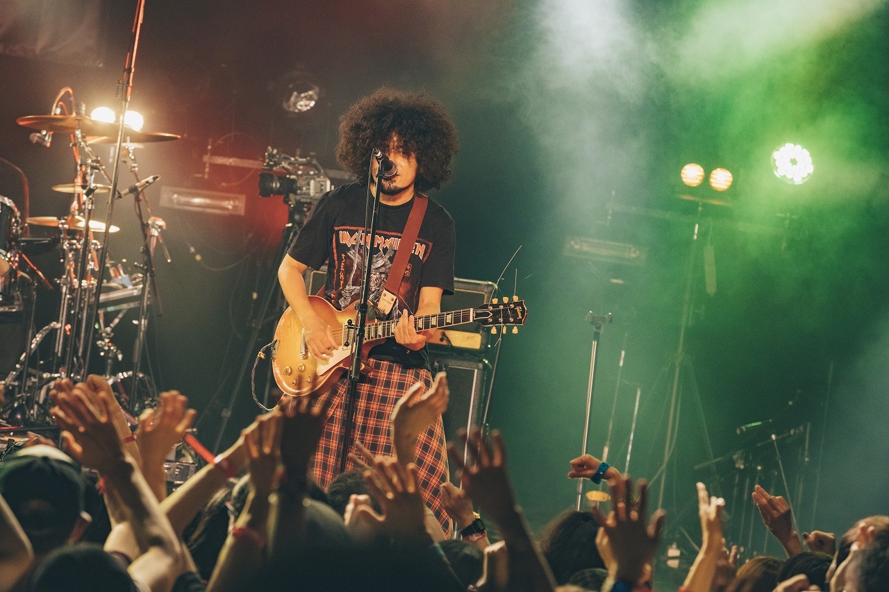 「夢があるとかないとか、そんなのどうでもいい。どうやって生きるかはお前が決めろ!」と宮原が叫んで切り込んだ「ドリームキラー」以降はよりアグレッシブに突き抜け、諒孟(Gt&Cho)のディストーションが唸ったり背面弾きが飛び出したり、井口裕馬(Ba&Cho)と本多響平(Dr&Cho)のビートがタフにテンポアップ。「愛をこれからも歌い続けます」と前置きして届けられた「スーパーヒーロー」も、己の信念を曲げない凛とした気概が胸を打つ。最後はオーディエンス一人ひとりを指さし歌った、未発表の新曲「バイバイ」で大いに躍動。明るい曲調でフロアを熱狂させ、自身初の『TOKYO CALLING』をハッピーなムードで締め括った。