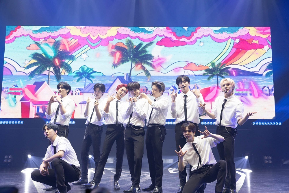 MCコーナーでは、「日本語の勉強をしている」というヒョンジュンを筆頭に、ウォンジンがメンバーたちに日本語を指南。セリムに「僕と結婚しませんか?」、ウビンに「今日から付き合いましょう!」と教えてファンを喜ばせると、9人で「オー!」と気合を入れて、「東京のLUVITYの皆さん この世は君のもの!」という号令で「JUMPER」を熱唱。バチバチの曲の途中で、ミニが自分のキメパートの「Let' go」を「I LOVE YOU」に替えてかわいくアピールして会場を和ませた。