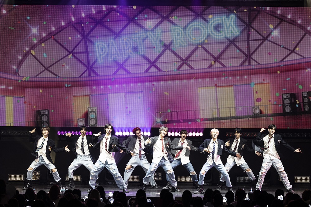 ラストは、「『PARTY ROCK』の最初に“遊ぼう、PARTY ROCK”と僕らが言ったら、皆さんは声を出せない代わりにペンライトをグルグル回してください」とヒョンジュンがファンにお願い。そしてセリムの「最後に言いたいことがあります!」という号令に併せて、全員で「LUVITY、サランハンダ(愛してる)~! 遊ぼう、PARTY ROCK!」と言って、日本初披露となる「PARTY ROCK」で本編を締めた。