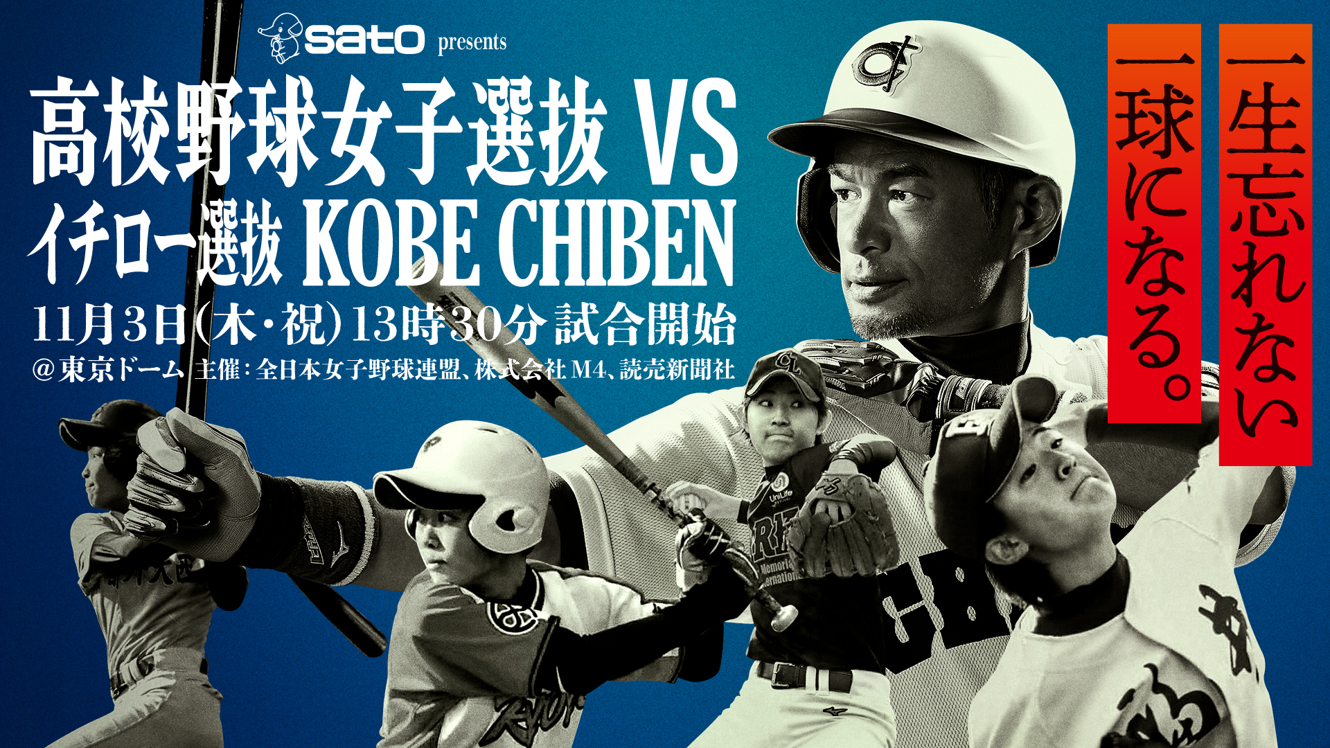 イチロー氏が率いる野球チーム「KOBE CHIBEN」が、高校野球女子選抜チームと対戦する『SATO presents「高校野球女子選抜」vs「イチロー選抜KOBE CHIBEN」』が、11月3日(木・祝)に東京ドーム(東京都)で開催される。