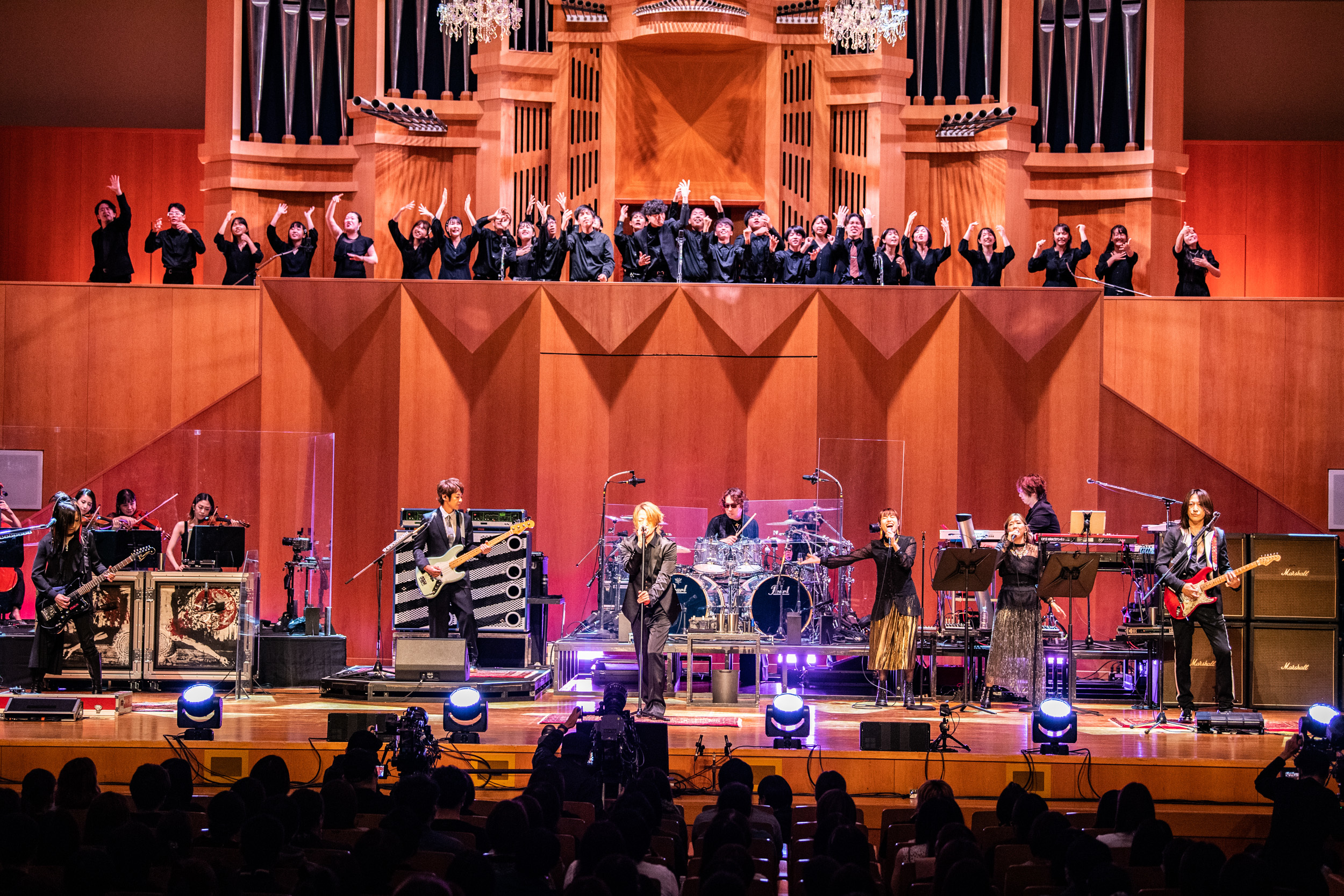 ライブ終盤では、浜松市立高等学校の生徒と東京スクールオブミュージック専門学校渋谷の学生たち26名がステージに現れ、「Friend of mine」を披露し、残すところアルバムの曲はラストの「All STANDARD IS YOU〜END ROLL〜」のみとなる。アルバム収録音源はラップが入ったりと「All STANDARD IS YOU」のRemix的要素の強いサウンドになっているが、どんなパフォーマンスになるかと思えば、まさかのコード進行から大胆に変えたアレンジver.で臨んできた。まさに20年前のGLAYと、今のGLAYが混ざり合うようなライブパフォーマンス。一瞬新曲かとも思わされるが、耳を傾ければ間違いなく「All STANDARD IS YOU」であり、GLAYらしい完全再現の締めくくりである。
