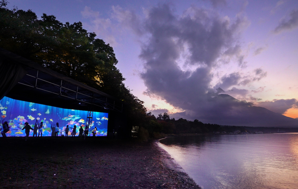 『チームラボ 山中湖 呼応する生命とお絵かき水族館』が、2022年10月28日(金)から11月13日(日)までの期間限定で、山梨県・山中湖の湖畔(旭日丘湖畔緑地公園内)にて開催される。
