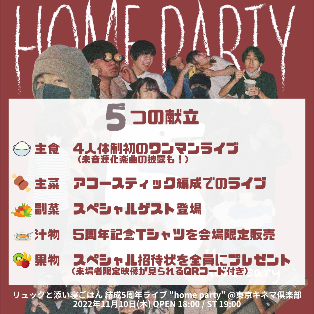 リュックと添い寝ごはん 結成5周年ライブ "home party"