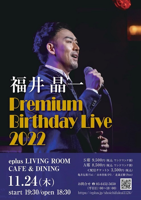 2022年11月24日(木)eplus LIVING ROOM CAFE&DININGにて、毎年恒例となった『福井晶一 Premium Birthday Live 2022』が開催される。