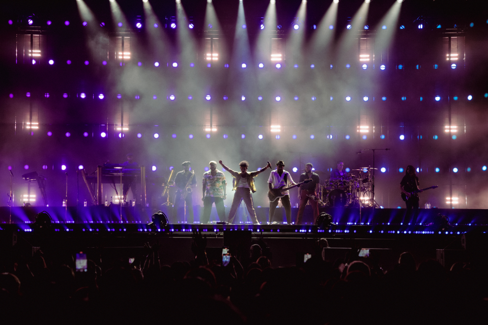 巨大なLEDスクリーンと赤いレーザーが会場を包み、グルーヴ溢れるサウンドと、「Take us to the stars tonight / 今夜は星まで連れて行ってくれ」とサビで歌うこの楽曲で、ドームに集まったファンを一気にブルーノの世界へと連れて行く。