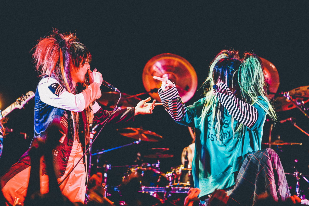 こうして彼らがこの対バンを企画した意図がわかってからは、原稿という責務を放棄しライブを楽しむのに専念することにした。ライブ後半、小柳が千秋の衣装を着用して登場して千秋にラップバトルの勝負を挑もうとするが、千秋が見事なフロウとアンサーで小柳を撃破し、『すっごいツインテールを決める会』に決着をつけてしまう場面には大笑いした。さらに「「変態」」を2人で歌った後、ふとこんなことをつぶやいた千秋に思わず“おいおい”とツッコミを入れたくなった。「なんか仲良いロックバンドみたいでいいじゃん」――。ここまで千秋がメンバー以外の誰かとステージでイチャついてる姿を見るのは初めてだったが、つまりこの一言で対バンが企画された理由がさらにはっきりした。千秋は、小柳のことが大好きなのだ(笑)。