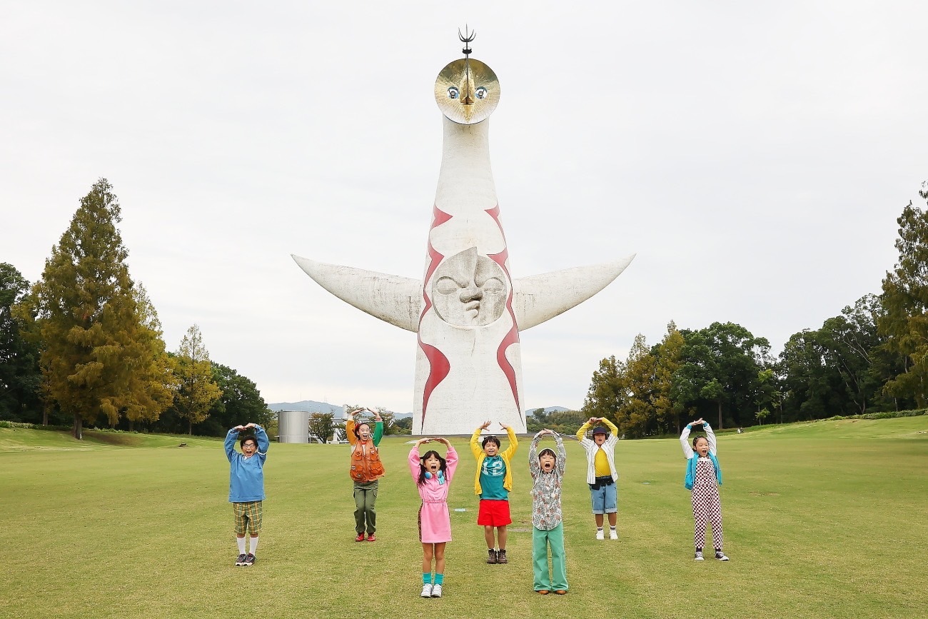 映像内には、万博公式キャラクターである「ミャクミャク」も出演しており、子供たちと楽しくモノづくりをする姿が描かれている。このシーンの撮影地は、これから作り上げていく万博会場地(大阪・夢洲)での撮影となっており、子供たちがミライを創造していく部分にまさにリンクしている。さらに、太陽の塔の前での印象的なダンスシーンも必見だ。