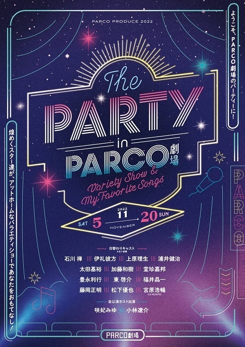 日替わりキャストでお届けする豪華バラエティショー『THE PARTY in PARCO劇場〜VARIETY SHOW & MY FAVORITE SONGS〜』が2022年11月5日(土)から東京・PARCO劇場で開幕する。