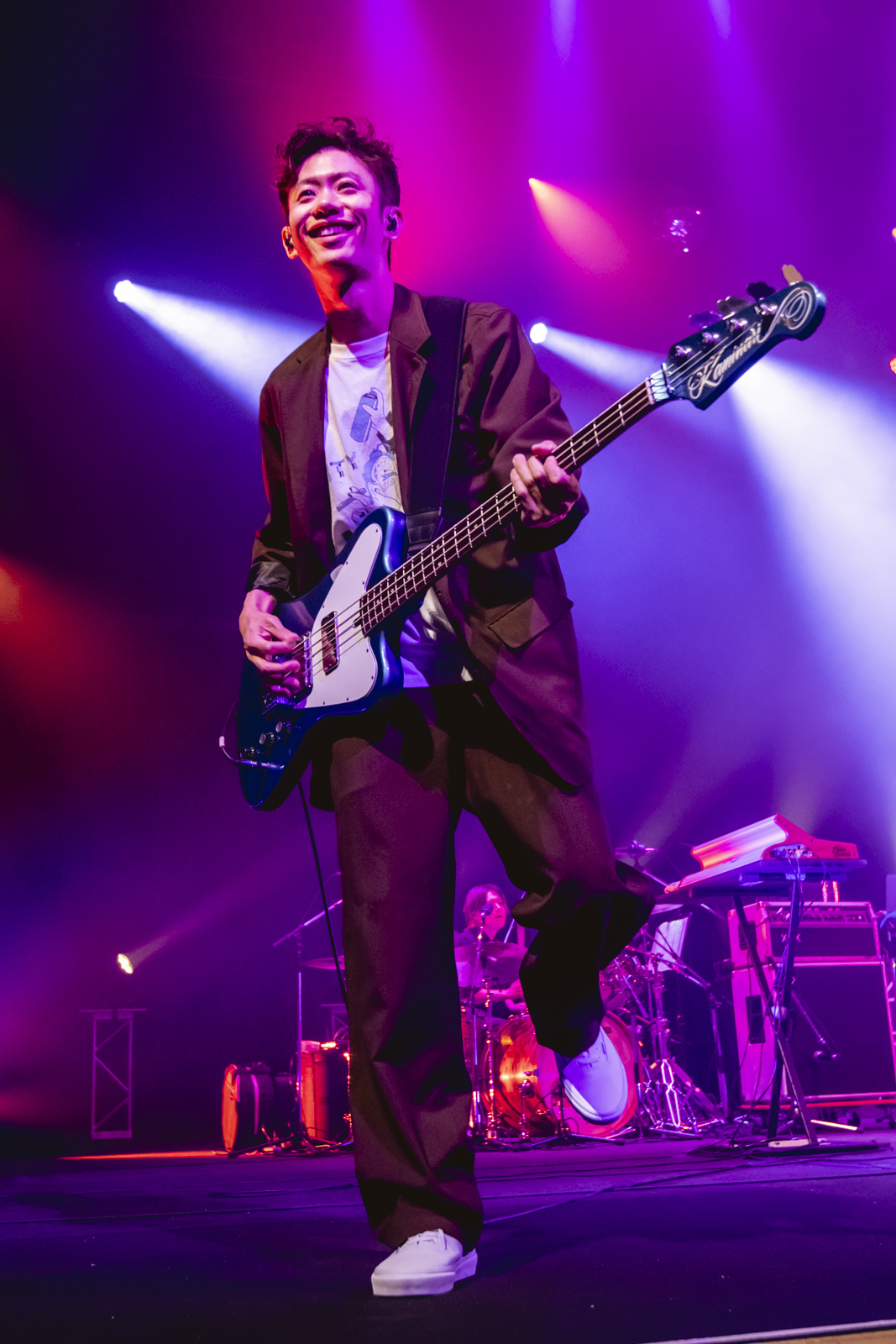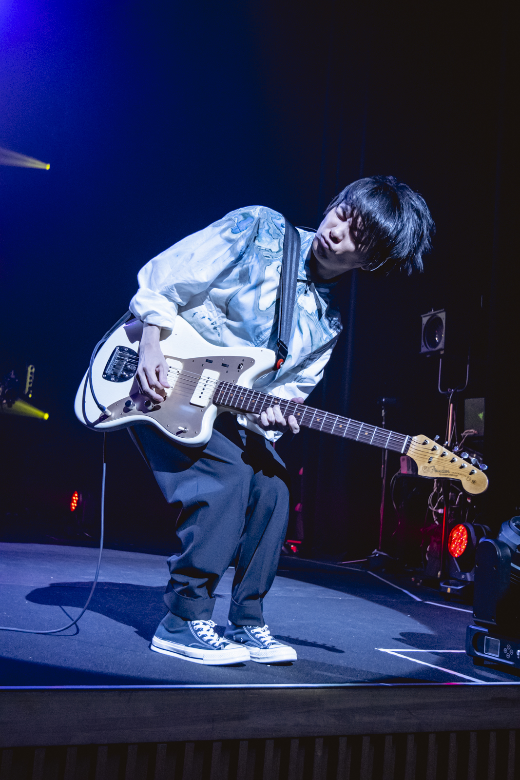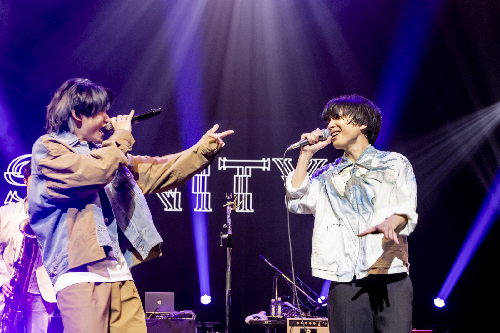 ドリーミーなエレクトリックピアノの音色がリードするメロウな曲調が、突如強烈に歪んだエレクトリックギターソロで眠りを覚まされる。「ZZZZZ」のトリッキーな構成は、いつ聴いてもスリリングでかっこいい。明るいディスコビートに彩られた「LIFE IS MUSIC!!!!!」では、須藤がステージ前に歩み出てオーディエンスにクラップをうながし、笑顔で斎藤と目くばせを交わす。さらに「E△7」「No More」と、明るく華やかなムードの楽曲を連ねてオーディエンスを心地よい一体感へ導く、セットリストの流れがとてもスムーズ。