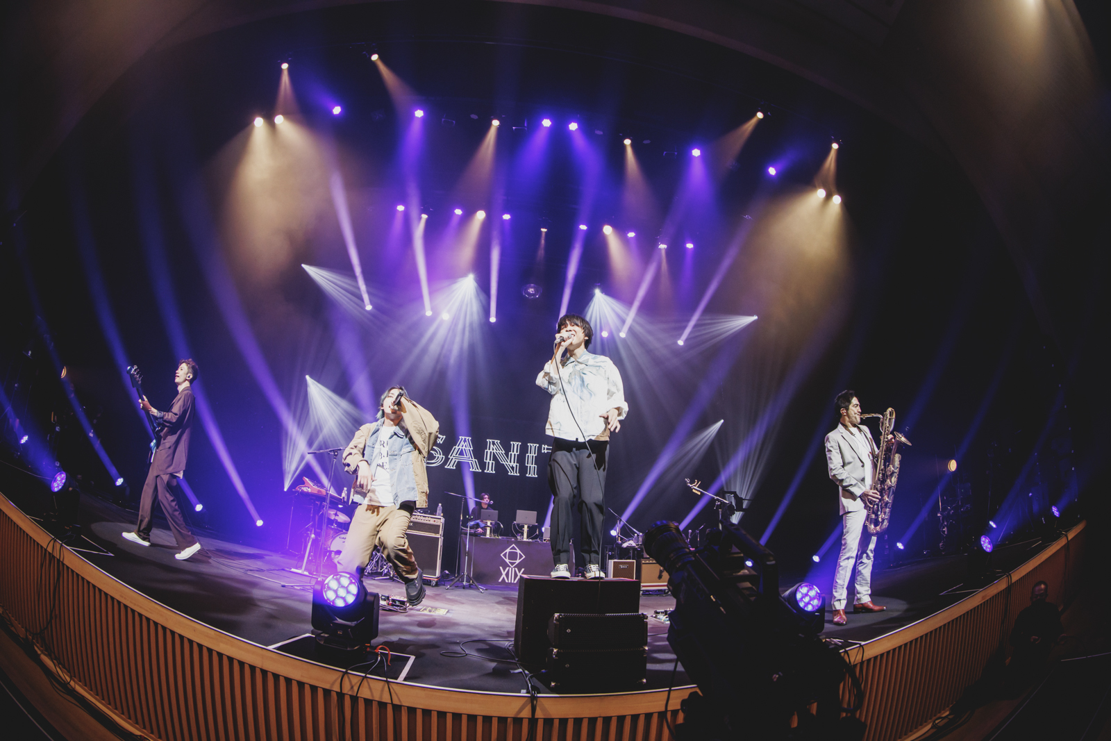 その後の、SKY-HIと谷中敦をダブルフィーチャーした新曲「スプレー」の盛り上がりは、間違いなくこの日最高の沸点を記録。斎藤がハンドマイクをつかんでSKY-HIと並び立つ。谷中と須藤がステージ最前線に躍り出てオーディエンスを煽る。骨太なヒップホップスタイルのトラックはXIIXの新たな挑戦だが、音源で聴くよりライブの爆発力はすさまじい。いずれ劣らぬフロント4人のオーラ、技巧、迫力。すごいものを観た。