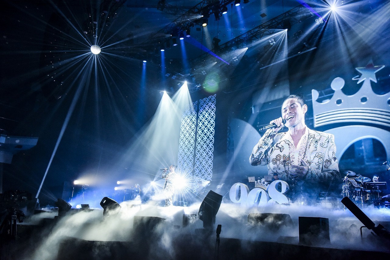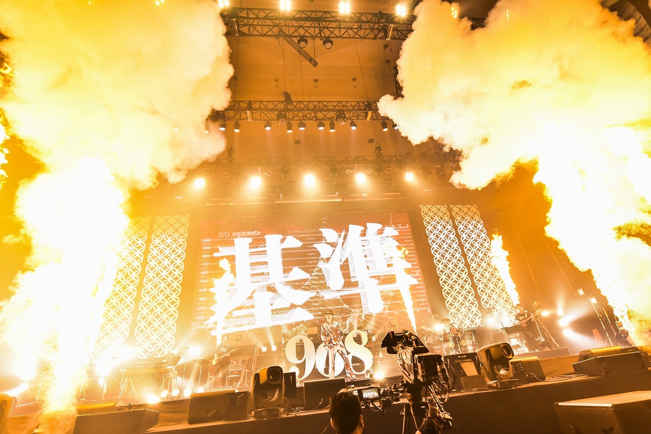 様々な出演者のファンで満員に埋め尽くされた日本武道館。開演直前、場内に流れていたのはこの日のパーティーのためにKREVAがDJとなって自らMIXしたもの。このダンサブルなMIXが、来場者の耳を、今回の祭りに心地よく馴染ませていくための大事な導入部になっていたことに気づいたのは、終演後だった。音楽の祭典ならではの、この計算され尽くした粋な計らい。さらに『908FES』といえば、出演者の演奏をKREBand(白根佳尚/Dr、大神田智彦/Ba、柿崎洋一郎/Key、近田潔人/Gt、熊井吾郎/MPC+DJ、SONOMI/Cho +Key)が担うところも大きな特徴。ここで初めてバンドを背負って歌うアーティストは、グルーヴィーでパワフルな生のバンドサウンドを体感。ファンは、いつもの曲をここだけのバンドアレンジで聴けるという楽しさが加わるところも、『908FES』が音楽の祭りたる所以。