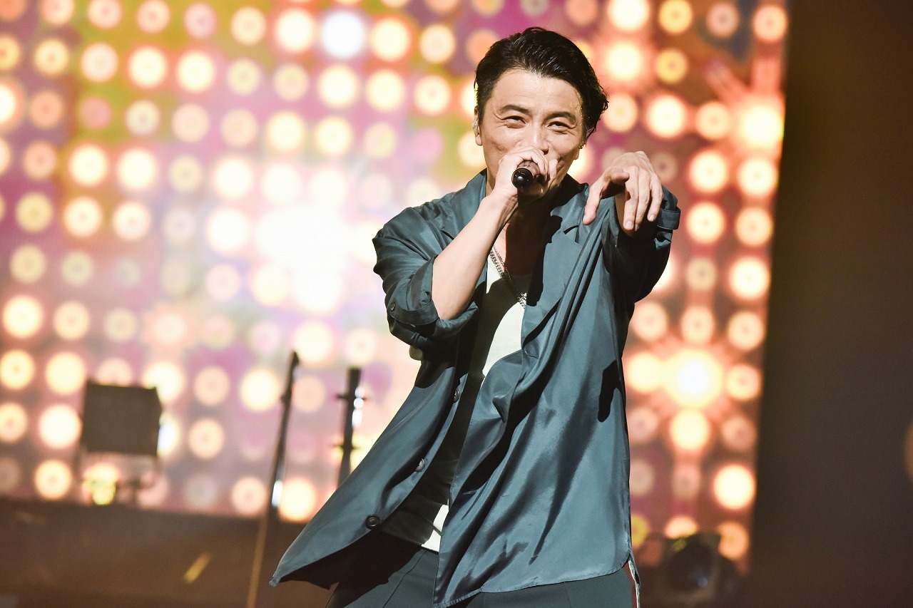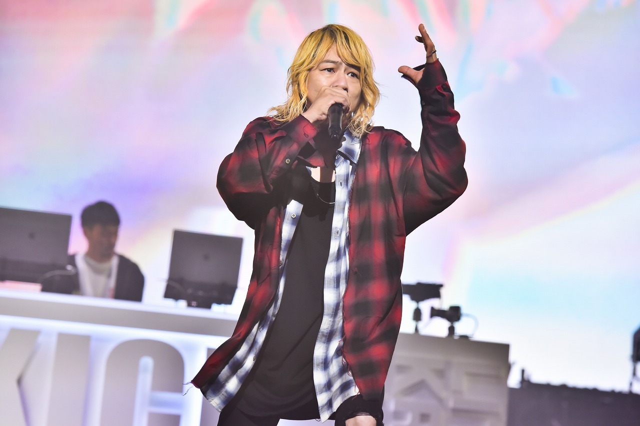 このあとはミラーボールが回るなか「GOOD TIME!」で体を揺らし、レーザーが飛び交う中、MCUが《来年で30です》のところを《来年で50です》と歌って場内をどよめかせつつ「地球ブルース~337~」へ。ここでは《あげろ!》のところで激しい炎が上がるなか、和の三三七拍子をみんなで鳴らしながら、大騒ぎ。