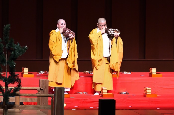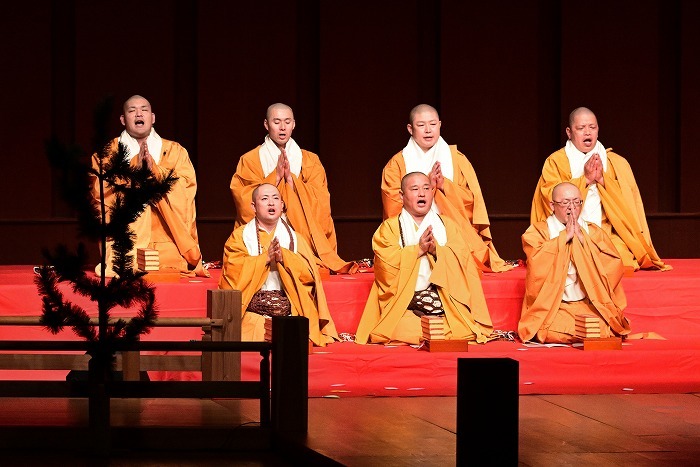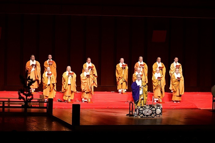 堤導師:今回出演するのは、全員が「声明師(しょうみょうし)」です。すべての僧侶が修行中に声明を習いますが、より深く興味をもった方が研鑽していく中で、選ばれた僧侶が声ひとつになるまでお唱えしていきます。いくら公演に出仕したいと来られても、声が研鑽されていない場合はお断りすることもあります。