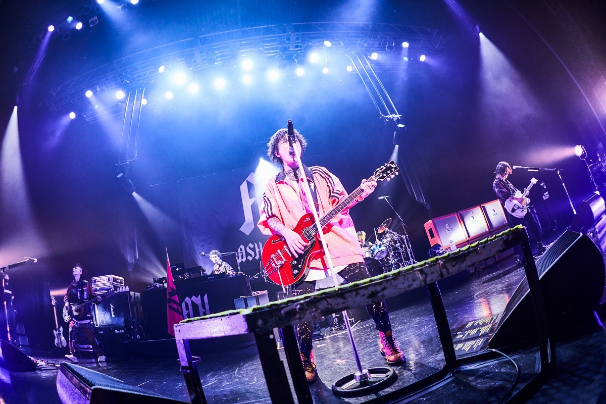 ASHが一人ひとりに語りかけるように告げて始まった終盤戦は、《今 想像さえも超えて行く》と前向きに歌う「Just do it」。「ここがツアーファイナル。だけど、ここが俺たちの始まり。一生忘れねぇよ、今日イチの景色を見せてくれよ!」と始まった「Remember」と続いて、フロアの圧倒的な盛り上がりでクライマックスを生むと、渾身の歌と演奏で魅せた「世界をぶん殴れ」でライブを締めくくる。