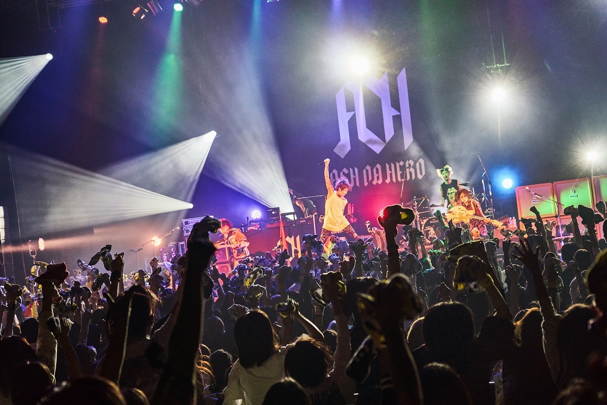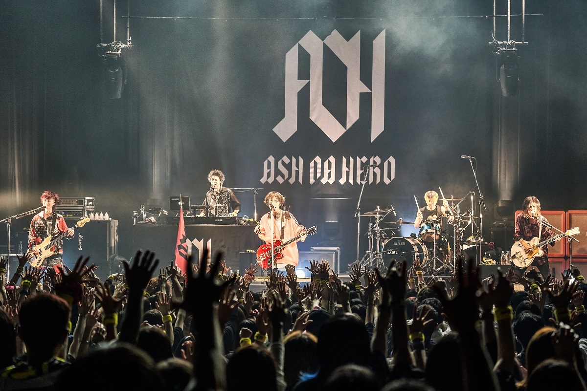 と、これで終演と思いきや。今後のライブ予定と「伝えたいことが本当にあるんですけど……察してくれ!」と超ドデカいニュースがあることを報告すると、もっとデカくなるためにツアー中も新曲を書き溜めていたことを話したASHが、「夢や目標や自分のやりたいこと、諦めるにはちょうど都合の良い時代。でも、俺たちは揺るがないよ。俺たちはあの日見た夢に向かって、嘘つかずに真っ直ぐ走って行きてぇもん。俺たちはこの時代で、アホほど売れたいロックバンドなんです! 死ぬ気でこの時代、太陽よりもギラギラ輝いてやる。そんな決意も込めた新曲です」と熱く語り、生まれたての新曲「最強のエンドロール」を披露。初の全国ツアーを完遂し、次の一歩を力強く踏み込むような強い意志と覚悟と希望に満ちた新曲は、まさに今ツアーの最強のエンドロールだったし、その向こうにあるASH DA HEROの明日を明るく眩しく映した。