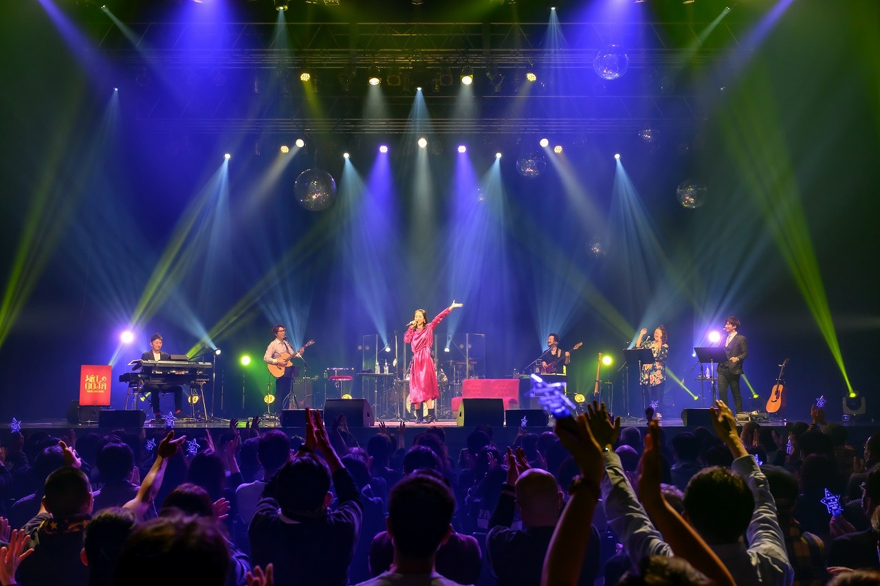 この日のライブは、9月に生まれ故郷の四日市で開催された『TADAIMA LIVE』と同じく二部構成。一部は新旧取り混ぜたオリジナル曲を披露する場で、キーボードが奏でるホーンの音色とワウギターをフィーチャーしたファンキーなシティポップ「Cold Kiss」、明るく激しくロックテイストを効かせた「あなたが決めた今日なら」「Footprint」と、聴き手を励ますメッセージ性の強い曲を連ねてぐいぐい進む。Ms.OOJAのライブでの歌唱力はただただ圧巻で、強烈なパワーと繊細な技巧、説得力と包容力を兼ね備えた上にとても伸びやかで自然体。あらためて、すごいシンガーだ。