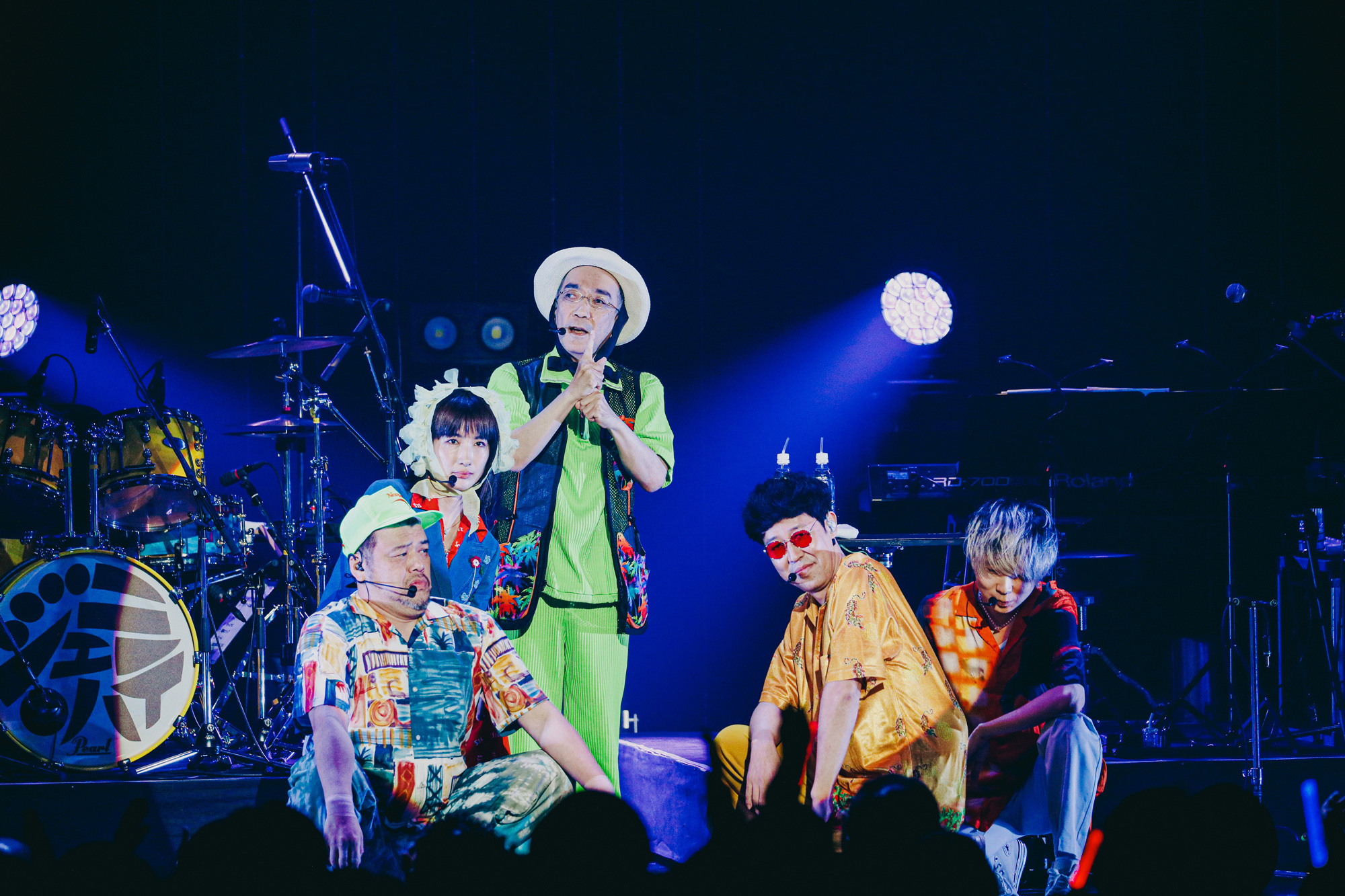 アーティストやクリエイターとのコラボ曲も多いジェニーハイ。「簡単に言うと(音源を)流そうと思います。流した音と一緒に歌おうと思います」との中嶋の正直すぎる曲紹介に、トークに川谷や小籔からの鋭いツッコミも入りつつ、ゲストボーカルにちゃんみなが参加する「華奢なリップ feat.ちゃんみな」、声優・高野麻里佳が参加する新曲「エクレール」を披露。5人だけとはまた違うサウンドで会場を盛り上げていった。