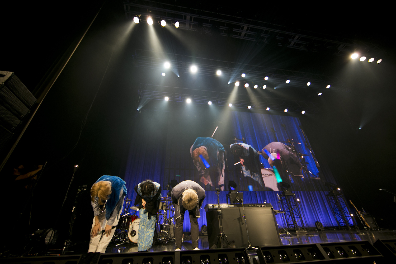 アンコールは「いつかオトナになれるといいね。」から。〈推しぴ〉に心酔する〈信者〉を主人公に据えたアッパーチューンでフロアを沸かせると、バンドメンバーの紹介を兼ねたソロ回しから「ロックな君とはお別れだ」へ。そして、メンバー達がツアーを振り返っていく。「1公演ごとに成長できた」「お客さんからもらった気持ちをリレーみたいに紡いでこれて、大きなパワーになっている」とmiroが話すと、初ツアーは「みんなに会える楽しみ」がありながらも、「完璧にやらなきゃと思ってしまう性格なので、不安もあった」と礼衣。「いまは最後までやりきれそうな気持ちと、終わってしまう寂しさが半々」と、様々な感情を抱きながら彼女はステージに立っていたようだ。そして、ツアーファイナル当日の朝、ランボルギーニにツユのロゴマークをデザインした宣伝カー“ツユボルギーニ”に乗り、会場近辺を周回していたぷすは、「人がやらないことをやることで自我を保っている」と客席を和ませながら、「僕は死ぬまで音楽をやめません。ツユも僕らが老いぼれるまでやろうと思ってます」と、改めて力強く宣言。ラストナンバーとして「やっぱり雨は降るんだね」を披露した。ステージ背面には演奏しているメンバーのリアルタイム映像がアップで映し出され、温かな空気に包まれる中、大団円でライブを締め括った。