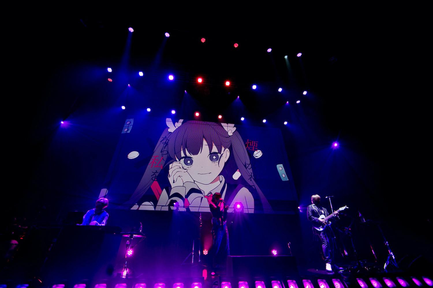 中盤では、ドラマティックなスロウナンバーを届けていく3人。「ひとりぼっちと未来」では、いまにも泣き出しそうな声で歌う礼衣に、ぷすのアコースティックギターとmiroの柔らかな鍵盤の音色が寄り添う。また、ツアーファイナル当日に配信がスタートした「どんな結末がお望みだい?」も披露。スマホゲーム『プロジェクトセカイ カラフルステージ! feat. 初音ミク』のユニット・ワンダーランズ×ショウタイムに書き下ろした楽曲だが、演奏中には同曲のツユバージョンのミュージックビデオを初公開し、オーディエンスを喜ばせていた。