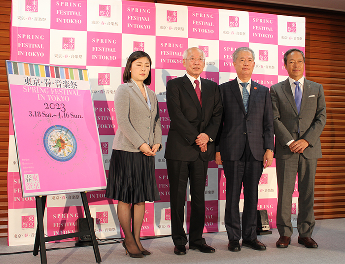 2022年10月31日、東京文化会館にて「東京・春・音楽祭2023」の概要発表会見が開催され、同音楽祭実行委員長の鈴木幸一氏、事務局長の芦田尚子氏、東京国立博物館館長の藤原誠氏、上野観光連盟理事長の長岡信裕氏が登壇した。2023年に19回目を迎える音楽祭は3月18日に開幕し、4月16日までオペラや管弦楽、室内楽など約70の有料公演のほか、コロナ禍で中止されていた無料公演「桜の街の音楽会」など、有料・無料あわせて約200公演を予定。さらに「ネット席」として好評を博したストリーミング配信も引き続き実施。また2023年に開園150周年を迎える上野公園や美術館などとタイアップし、音楽やアートなどを通して上野を盛り上げていく。