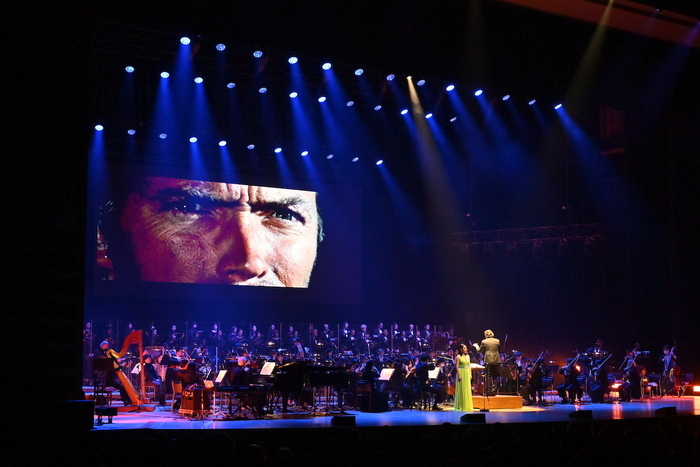『続・夕陽のガンマン(1967/伊独西米)』『ワンス・アポン・ア・タイム・イン・ザ・ウェスト(1968/伊米)』といったマカロニ・ウェスタン映画の名曲の数々を、ソプラノ歌手のヴィットリアーナ・デ・アミーチスと総勢45人の合唱団、GLORY CHORUS TOKYOが加わり、儚くかつ壮大に奏でていく。聴衆の誰もが、この芳醇で贅沢な演奏とクリント・イーストウッドらが繰り広げる迫力のシーンの数々を、 まさに手に汗を握りながら聴き入っていた。