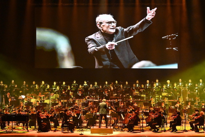 このコンサートはイタリアの映画音楽界の巨匠、 エンニオ・モリコーネが書いた数々の映画音楽を映像の上映と共に合唱団とオーケストラが演奏するプログラムだ。 2020年に亡くなったモリコーネが、 生前から企画していた公演だったがコロナ禍が世界を直撃し、予定されていたワールド・ツアーは延期。自身で携わった渾身のプログラムを観ることが叶わなかった。指揮を取るのは息子のアンドレア・モリコーネ。父の遺志を継いで実現させたのが本コンサートだ。