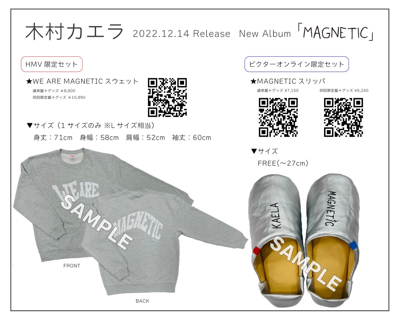 本日公開されたジャケット写真は、タイトル『MAGNETIC』の通り、木村カエラがまるで磁石になったビジュアルで世界観を体現している印象的な一枚となっている。そしてビクターオンラインストア限定盤に付属する「MAGNETICスリッパ」、HMV限定盤に付属する「WE ARE MAGNETICスウェット」も公開されている。