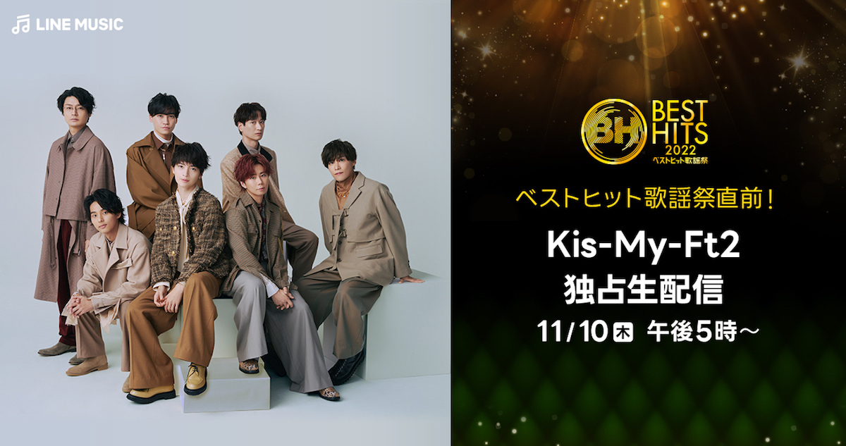 11月10日(木)19時から大阪・フェスティバルホールから生放送される読売テレビ・日本テレビ系音楽特番『ベストヒット歌謡祭2022』と連動し、『ベストヒット歌謡祭直前!Kis-My-Ft2独占生配信』をLINE MUSICのLINE公式アカウントにて、同日17時より配信することが決定した。