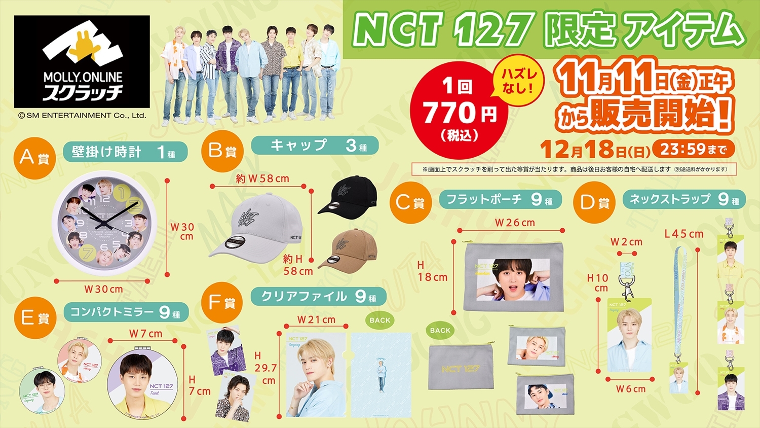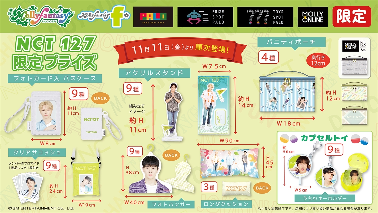 NCT 127の普段のクールなパフォーマンスとはギャップのあるラフさをコンセプトに完全撮りおろしで制作された限定プライズ・カプセルトイ・オンラインスクラッチ商品を、『モーリーファンタジー』『PALO』をはじめとするアミューズメント施設、オンラインクレーンゲーム『モーリーオンライン』、カプセルトイ専門店『TOYS SPOT PALO』(トイズスポットパロ)において11月11日(金)より展開する。