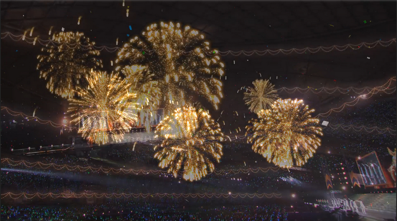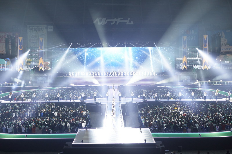 今回は各パートをライバル同士で唄いあい、間奏ではケイエスミラクルとダイイチルビーがお互いの輝きをレースで見せることを誓うなど、ファンにはたまらないエモーショナルな演出にあふれるステージとなった。さらに配信ではドーム内が煌びやかな輝きで飾り立てられ、ラストには打ち上げ花火が上がるなどグランドフィナーレ的な演出も。そう、3時間以上続いた夢のような時間もいよいよフィナーレへ……。