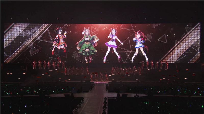 それぞれのキャラクターらしさの込められた歌声や、間奏ではサクラローレルからの綺麗な桜を咲かせます! といった決めゼリフも織り交ぜ、彼女達がこれからの『ウマ娘』ワールドを盛り上げていくこと間違い無しとファンに印象づけるフレッシュさ全開のパフォーマンスが繰り広げられた。