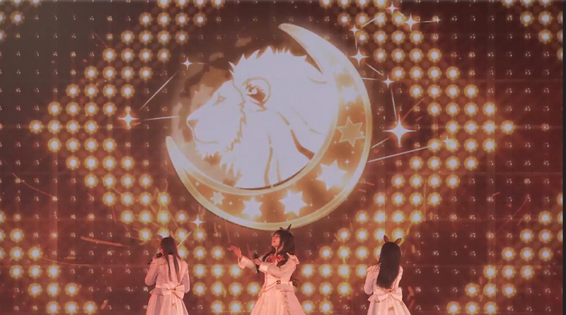 そんな彼女達が唄うナンバーは、プレイヤー同士で競い合う「チャンピオンズミーティング」の勝利者だけがウイニングライブのセンターに立てる特別な曲として話題を呼んだ「Ms. VICTORIA」だ。ステージ周囲から炎が吹き上がり、スクリーンにはチャンピオンズミーティングを象徴する12星座のエンブレムが映し出される中、9人は勝利の喜びとさらなる先へと進んでいく決意を勇ましく力強く唄い上げ、最後は壮大なハーモニーで締めくくった。ライブ中にはステージの中心に立った高柳・Lynn・日原の三人をさらなる高みに導くように、ステージ中央がリフトアップ。ゲーム内のウイニングライブを再現するような演出に客席もさらに盛り上がる。チャンピオンズミーティングで勝利したファンはこの光景を再び、勝利を逃したファンはいつか自分のウマ娘でこのライブをと、決意を新たにするようなステージとなった。