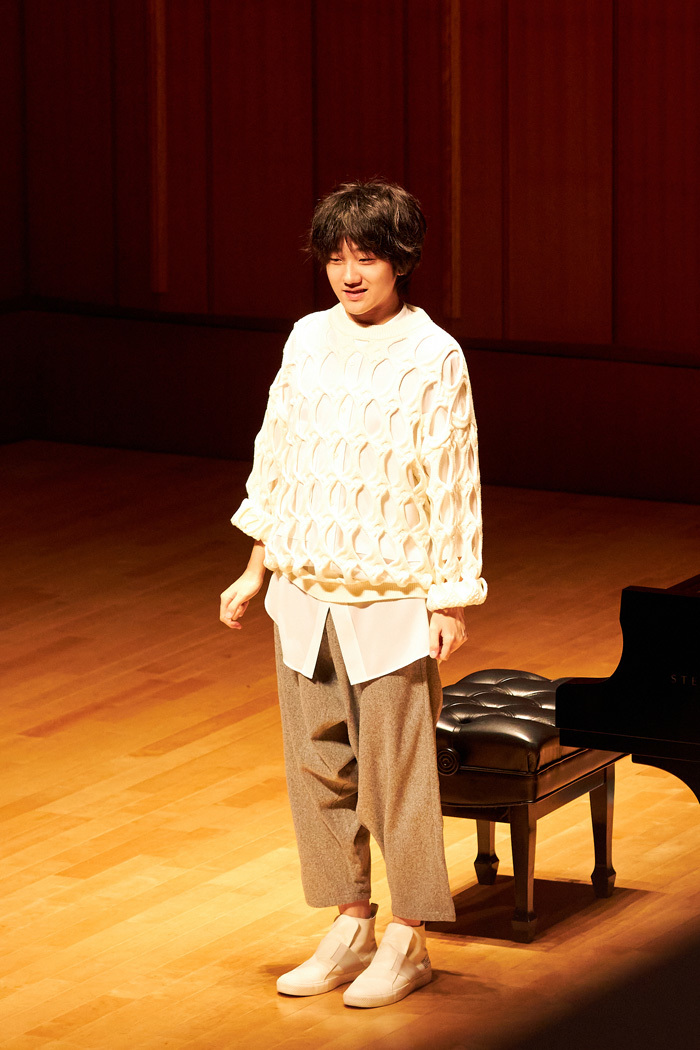 二部はディズニー・メドレー、「さくらさくら」のピアニスト編曲版、オリジナル曲「No Tears Forever」と続き、ラブリーなイメージのディズニーの名曲が、香り高いスタンダードナンバーに聞こえる。「No Tears Forever」はマイナーコードで始まる憂いのあるロマンティックな曲。21世紀という乱世に生まれた紀平さんがこの世に思うこととはどんなものだろう……とこの曲から色々想像した。中間部の明るい曲調は洗練されたジャズのようで、打鍵のダイナミズムに圧倒された。このほかにも後半には「Fields」「Blue Bossa Station」とオリジナル曲が演奏され、その間にショパンのエチュードOp.10-3「別れの曲」が挿入されたが、ショパンと前後のジャジーな曲とが、なんの齟齬感もなく溶け合っていたのが印象的だった。作曲家としても精力的に活動している紀平さんにとって、ドビュッシーやショパンは対等に会話できる友達のような存在なのかも知れない。