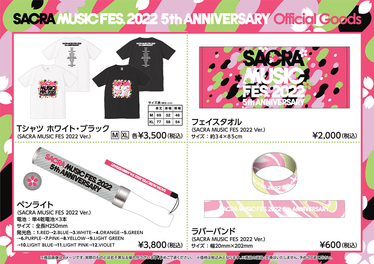 2022年11月26日(土)・27日(日)に幕張メッセで開催される音楽フェス『SACRA MUSIC FES. 2022 -5th Anniversary-』オフィシャルグッズのラインナップが公開された。