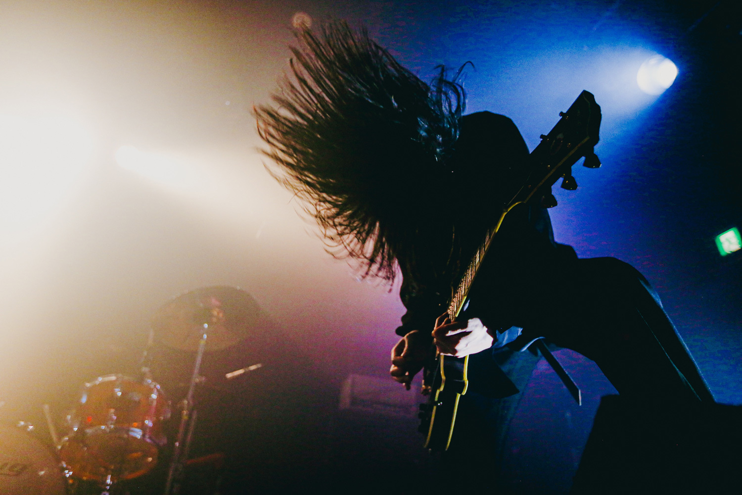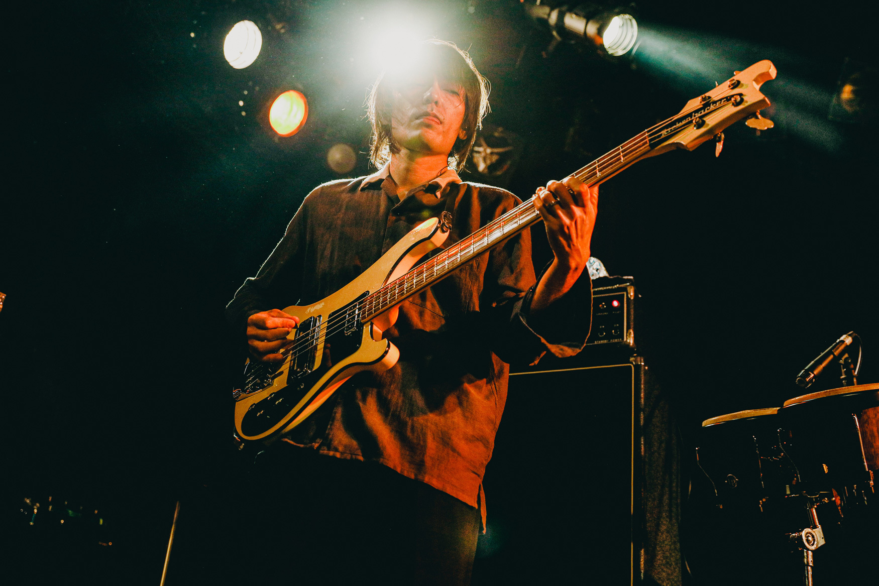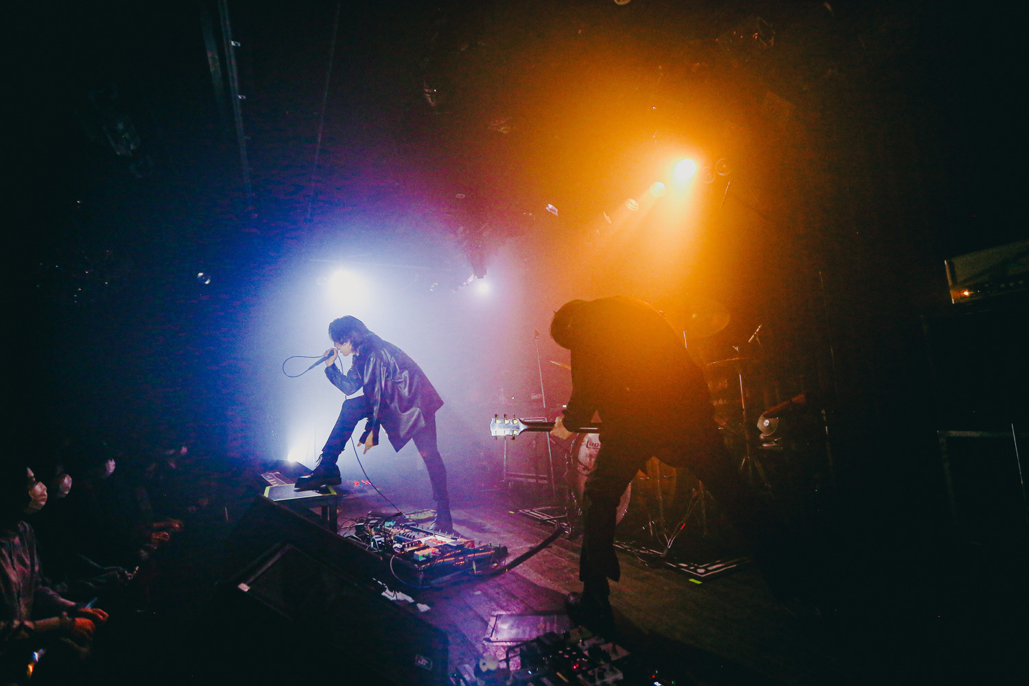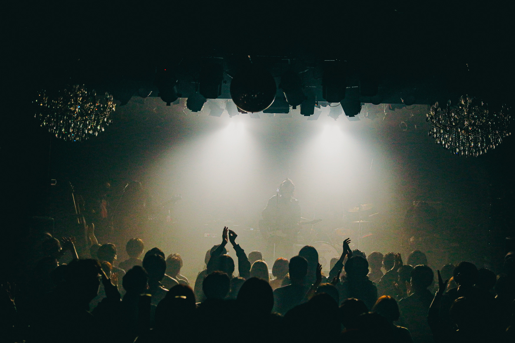 バンドサウンドが一気に爆ぜたライブ中盤。「DOWN TO HEAVEN」、小林は頭を振り乱してシャウトし、不穏に鳴り響くギター、情緒不安定かと突っ込みたくなるほど緩急凄まじいリズム展開が続いていく。バンドの音に吸い込まれていくというより、怖いもの見たさでのぞき込むような感覚。このままついていけば間違いなく気持ちがいい。でも、そこから抜け出せなくなるような怖さもある。その感覚は次曲「BAD DREAM」で確信に変わる。洪水のように降り注ぐ音。照明が煌々と光り、逆光でメンバーの姿なんて何も見えない。でも目の前にいるのはわかるから、ただ信じて音についていくだけ。それだけで間違いなく気持ちが良くって、満足度の高いパフォーマンスの連続に観客はみな自由気ままに体を揺らしている。「Ghost Rider」「Xeno」と、果てしない陶酔感、エンドルフィンがどぱどば出ているのがわかって、もっともっと音を浴びたいと欲求が高まっていく。が、45分というステージの時間は驚くほど一瞬に終わりを迎える。