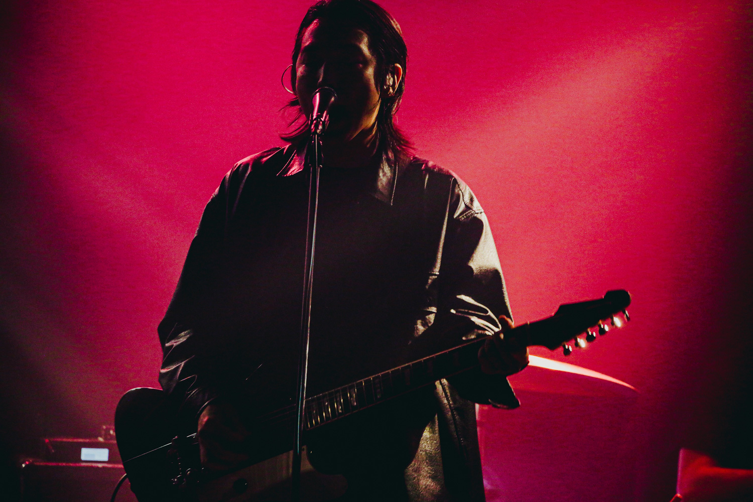 「Singin’in the Rain」のSEに合わせ、メンバーがステージに登場すると、ゆるりと「あなたを愛したい」からThe Novembersの世界が開けていく。甘くて濃い、でも浸透率の高い音が感情を絡めとっていく。観客はみなまっすぐにステージに目を向けているけれど、ステージの照明は光が少なく、メンバーの表情はほとんど見えない。その分、音への集中力が高まり、どっぷりと彼らの音にハマりこんでいくことができる。曲終わりに向けてのケンゴマツモト(Gt)のギターの歪みは混沌とするほどに純度が高くなっていき、唯一無二の世界観を作り上げていく。