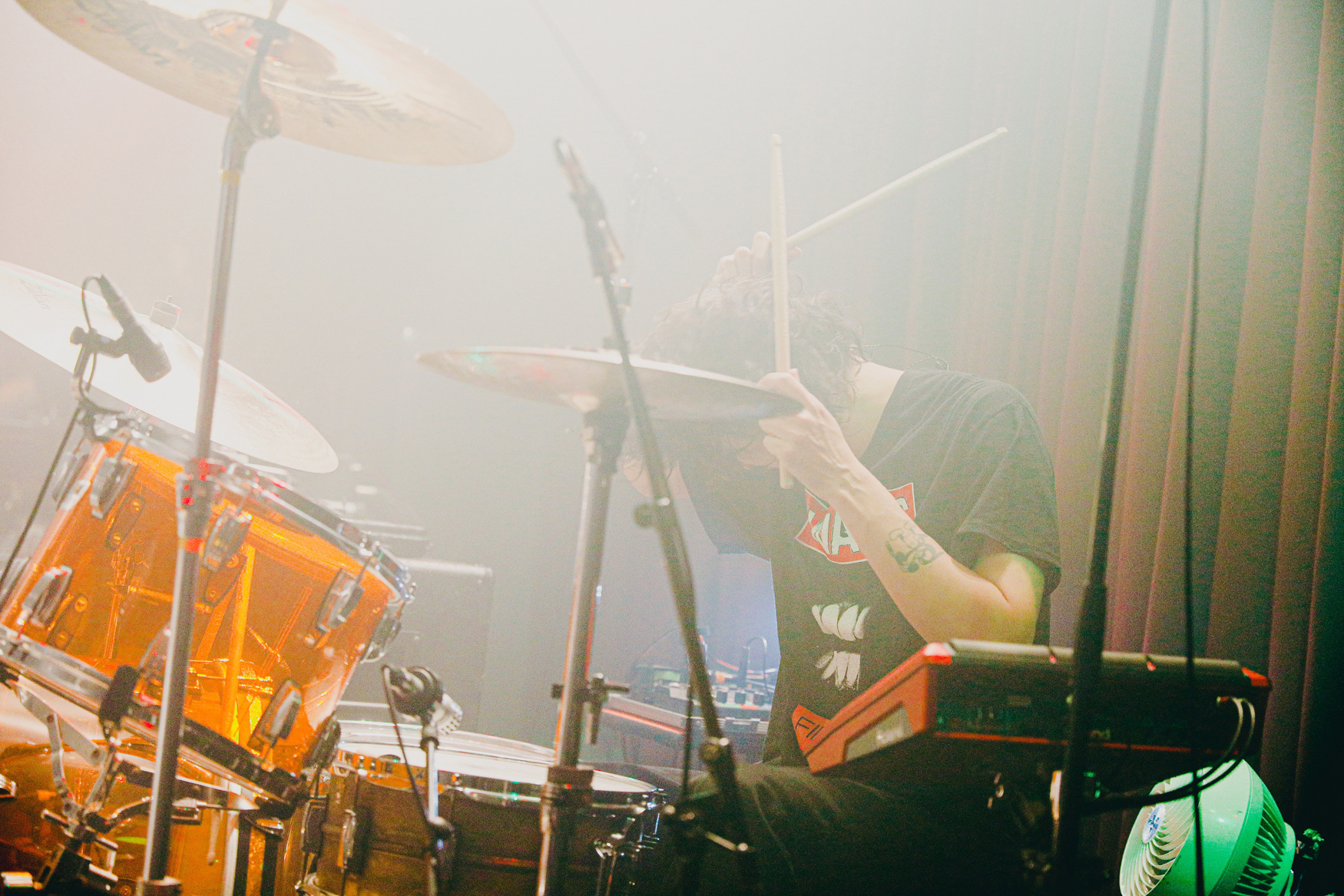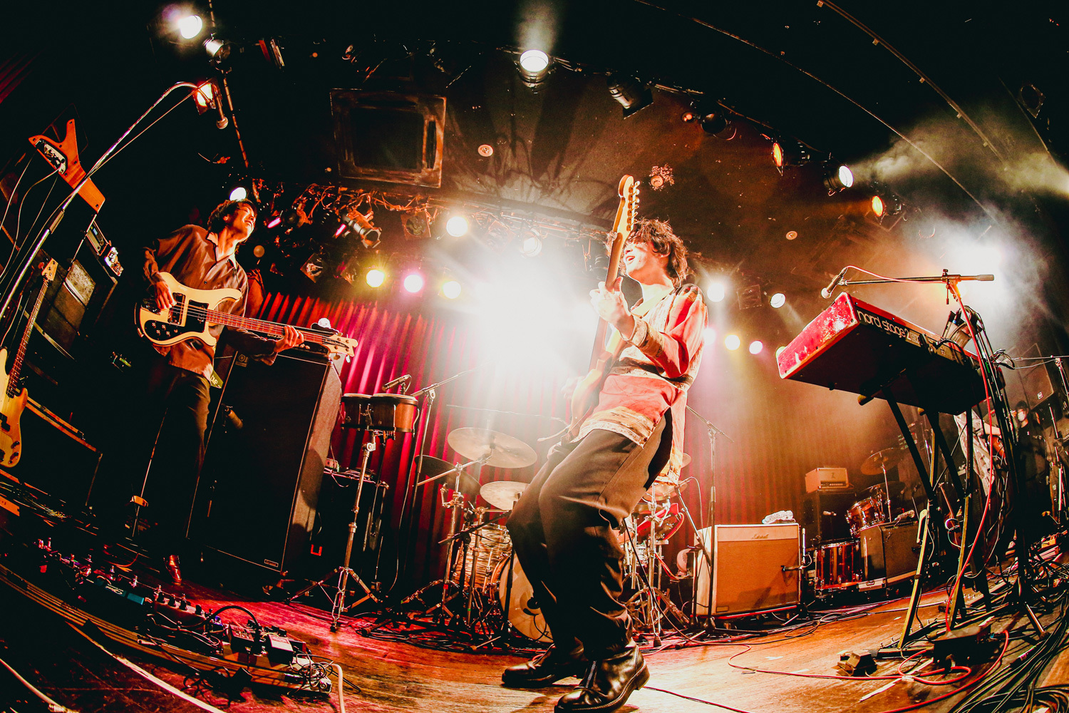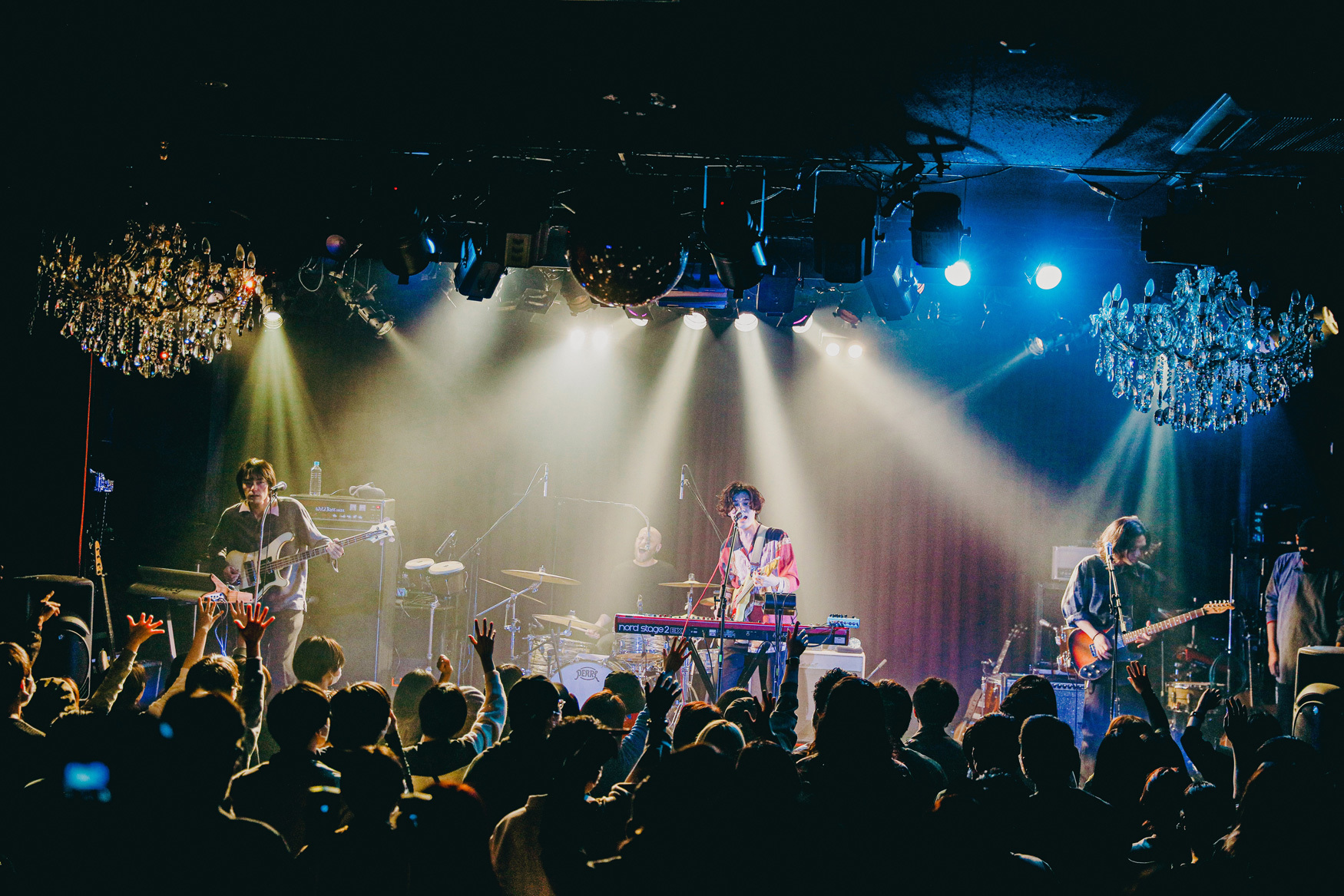 「自由に楽しんでいる感じがして最高です!」、気ままに音に乗っかって踊り、揺れる観客を見て、ご満悦な表情を見せるメンバーはそのまま、11月2日(水)にリリースされたばかりのEP「Leviathan」から同タイトルをプレイ。疾走感、生音の気持ち良さを追求したバンドサウンドが高揚感をさらに煽っていく。かと思えば、「24/7 What For」ではとにかく複雑でタイトなリズムでフロアを圧倒。ロマンチックだけどダイナミック、アクセル踏みっぱなしのサウンドで先へ先へと進んでいくバンドになんとか喰らいついていく観客たち。Reiが奏でるキーボードのイントロが印象的な「Media」ではStevenのコーラスが秀逸だし、高まるグルーヴに思わず跳ね上がる観客たちもたまんない表情を見せてくれる。