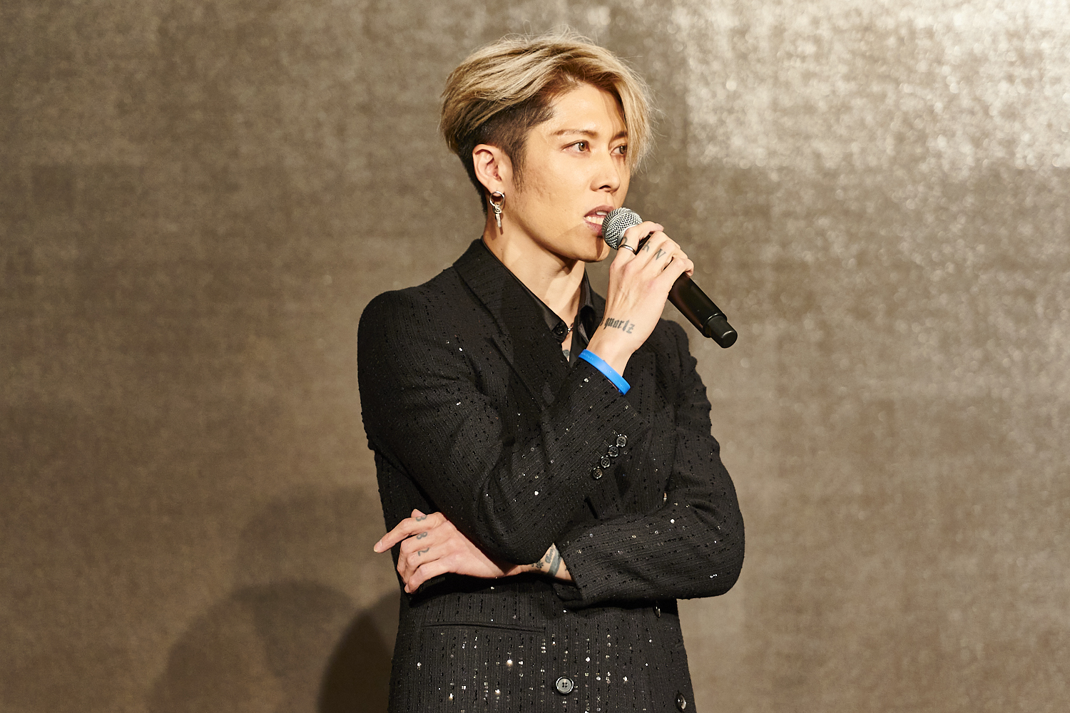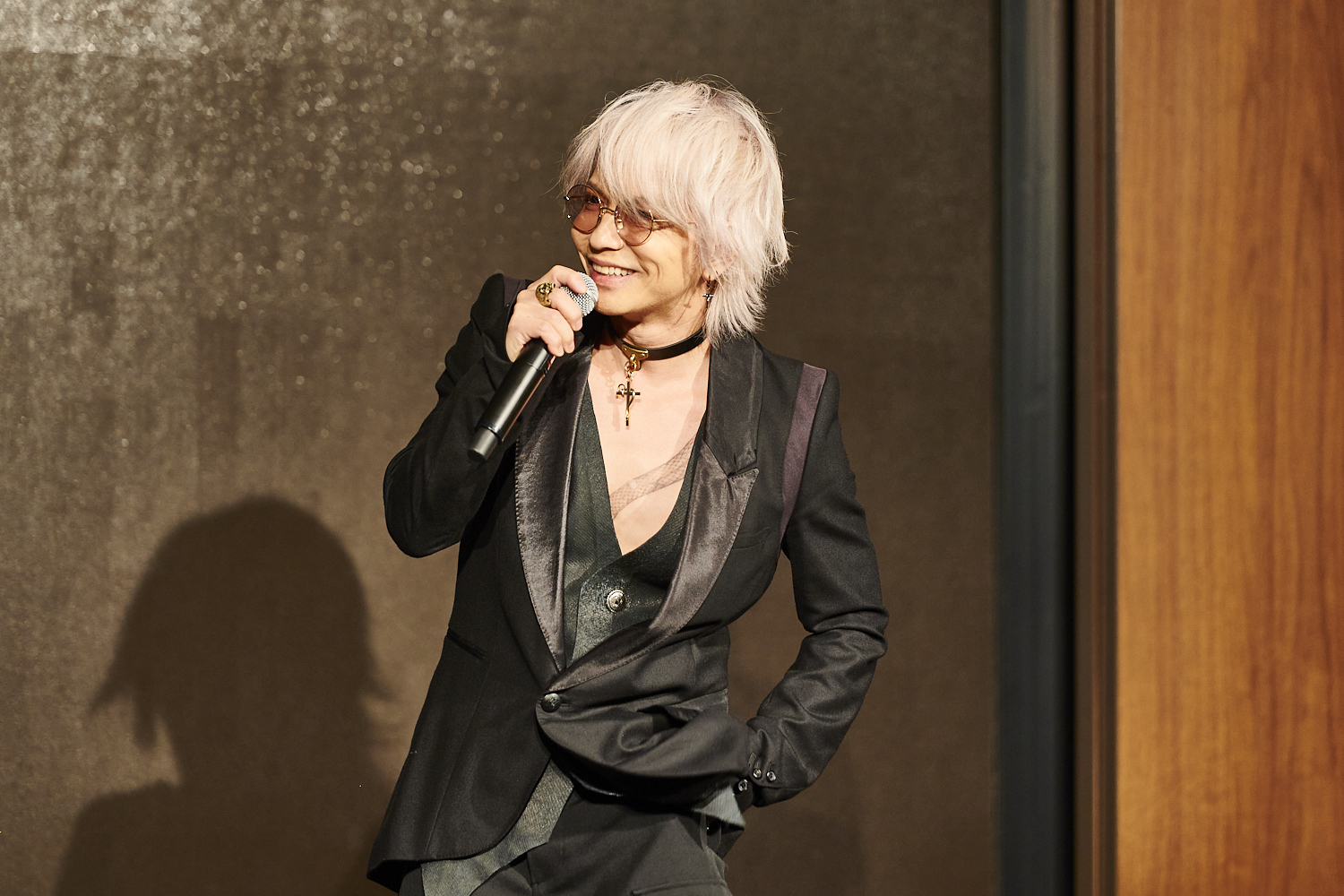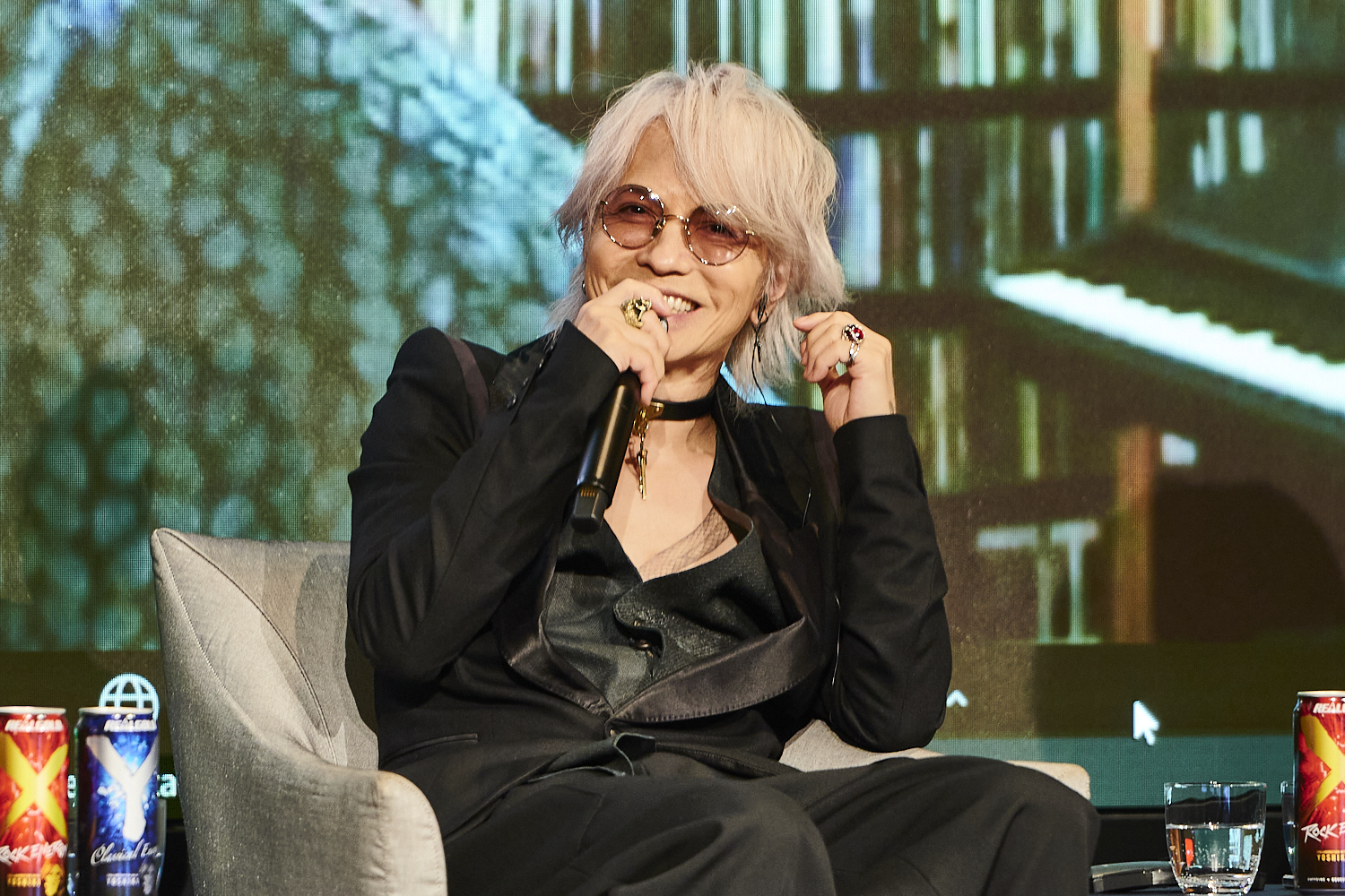 そうして、質疑応答終了後には囲み取材が行われた。記者たちが前方に呼ばれ、4人がいる舞台に近づくと、気品あるラグジュアリーなフレグランスの香りが彼らのほうから漂ってきた。今後の活動について、具体的な目標を質問されると、SUGIZOは「夢も可能性も無限大」と伝えたあと「世界に向けて日本の音がトップレベルまでのし上がったことはほぼない。アニメやゲームというコンテンツがワールドワイドになっていくなか、音楽は遅れをとっている。もし僕らの力でそれを巻き返すことができたら素晴らしいなという夢は持っています」と話した。続けたHYDEが「だから、ひと暴れいしたいなという気持ち。このメンバーが揃えばひと暴れ、百暴れでもできちゃうなというチャンスがある。これを起爆剤に自分たちの可能性や夢をみんなで爆発させたい」と話すと「いま暴れられるバンドもなかなかいないんでね」とMIYAVI。