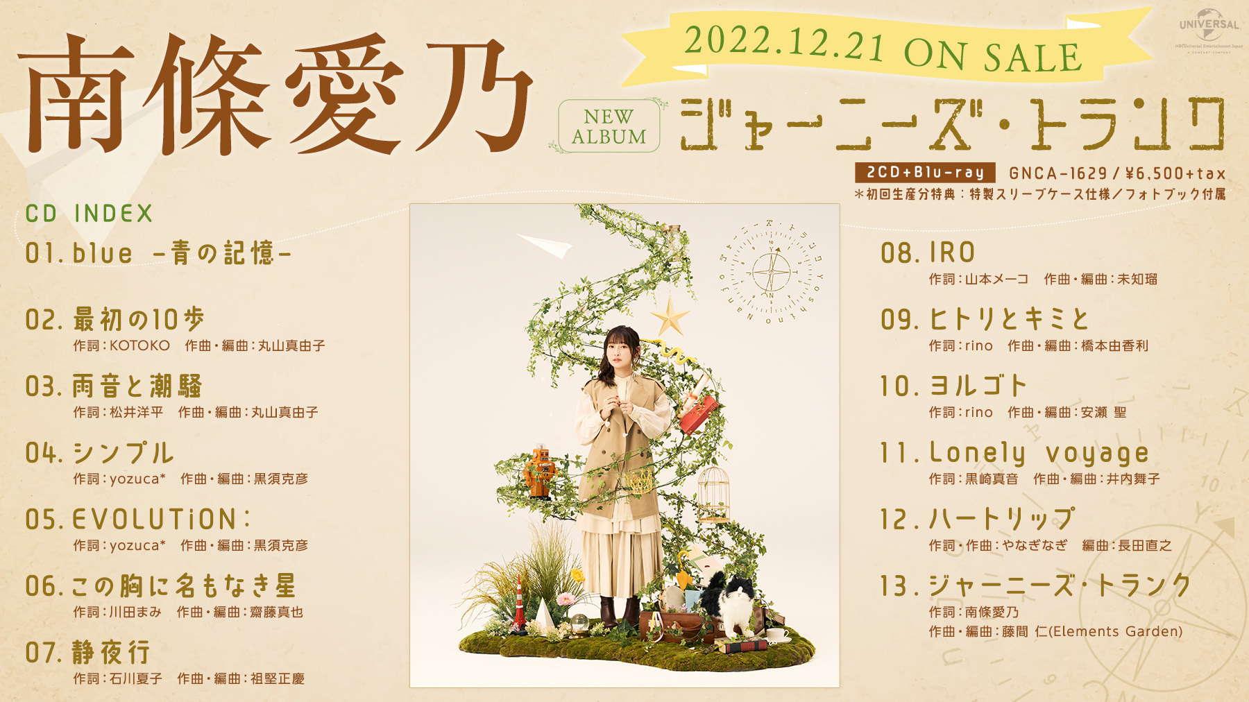 さらに南條愛乃本人が作詞を手がけたアルバム表題曲「ジャーニーズ・トランク」が、11月14日(月)の23時30分より放送予定となる文化放送・超!A&G+「南條愛乃 Nのラジオ」で初オンエアされるので、ぜひリアタイで聴いてほしい。