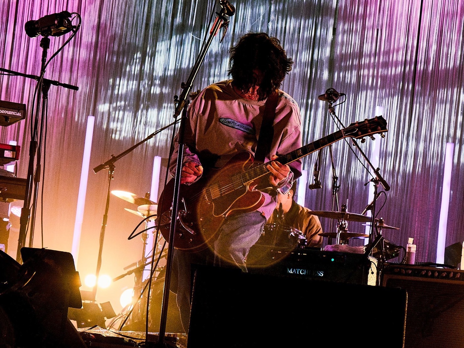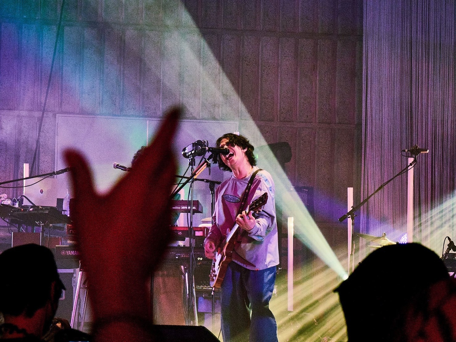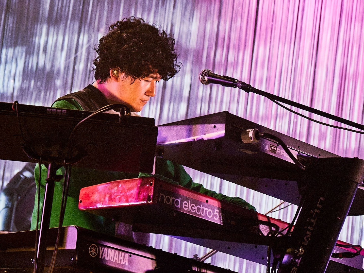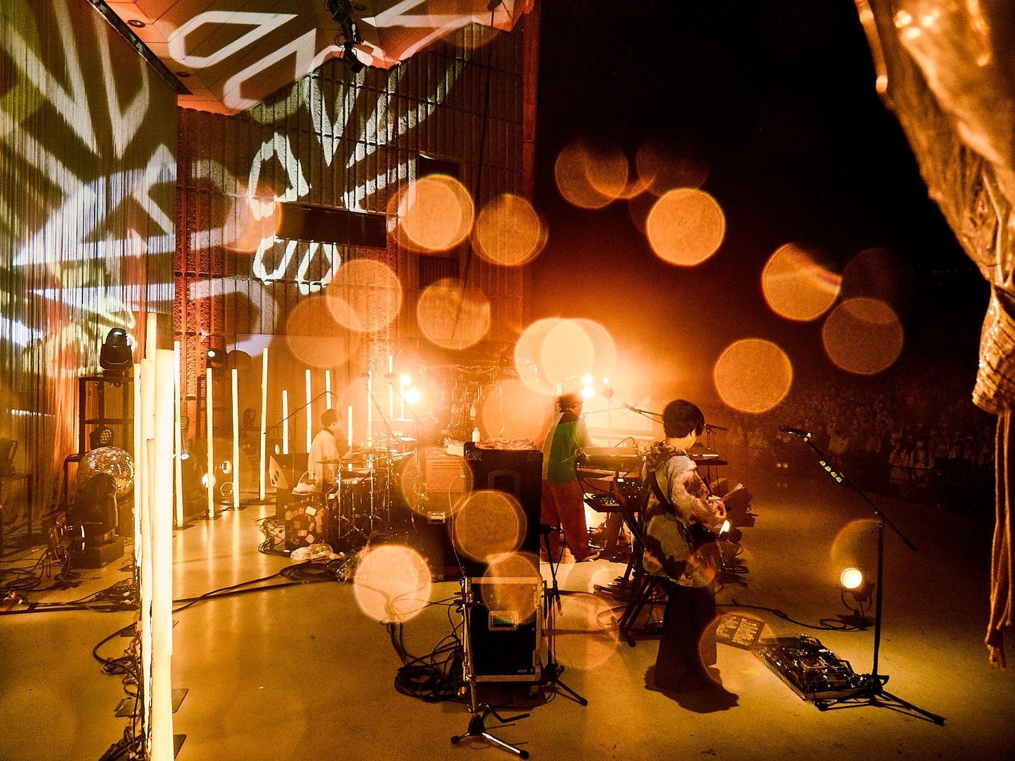メンバー紹介を経て突入した後半戦、「ノンタイアップでここまで色んな人に届くことができた、みなさんが大事な曲にしてくれた曲」という前振りで届けられたのは、「なんでもないよ、」……ではなく、「イランイラン」! イントロ中に発されたはっとりの「何で!?」というコメントにも笑ったが、キーボードが明るく広がり、聴く者の前進を促すパワーのあるこの曲も、言わずもがな名曲だ。そこから一気に、ダンサブルな「愛のレンタル」や、ネオン調のライトが目にも鮮やかな「カーペット夜想曲」、ユーモラスでポップな「STAY with ME」をプレイ!「星が泳ぐ」では、流れ星を想起させる照明が会場全体を包み込み、煌びやかな光を全身で浴びながら、気持ち良く身体を揺らしながら音楽を堪能できた。