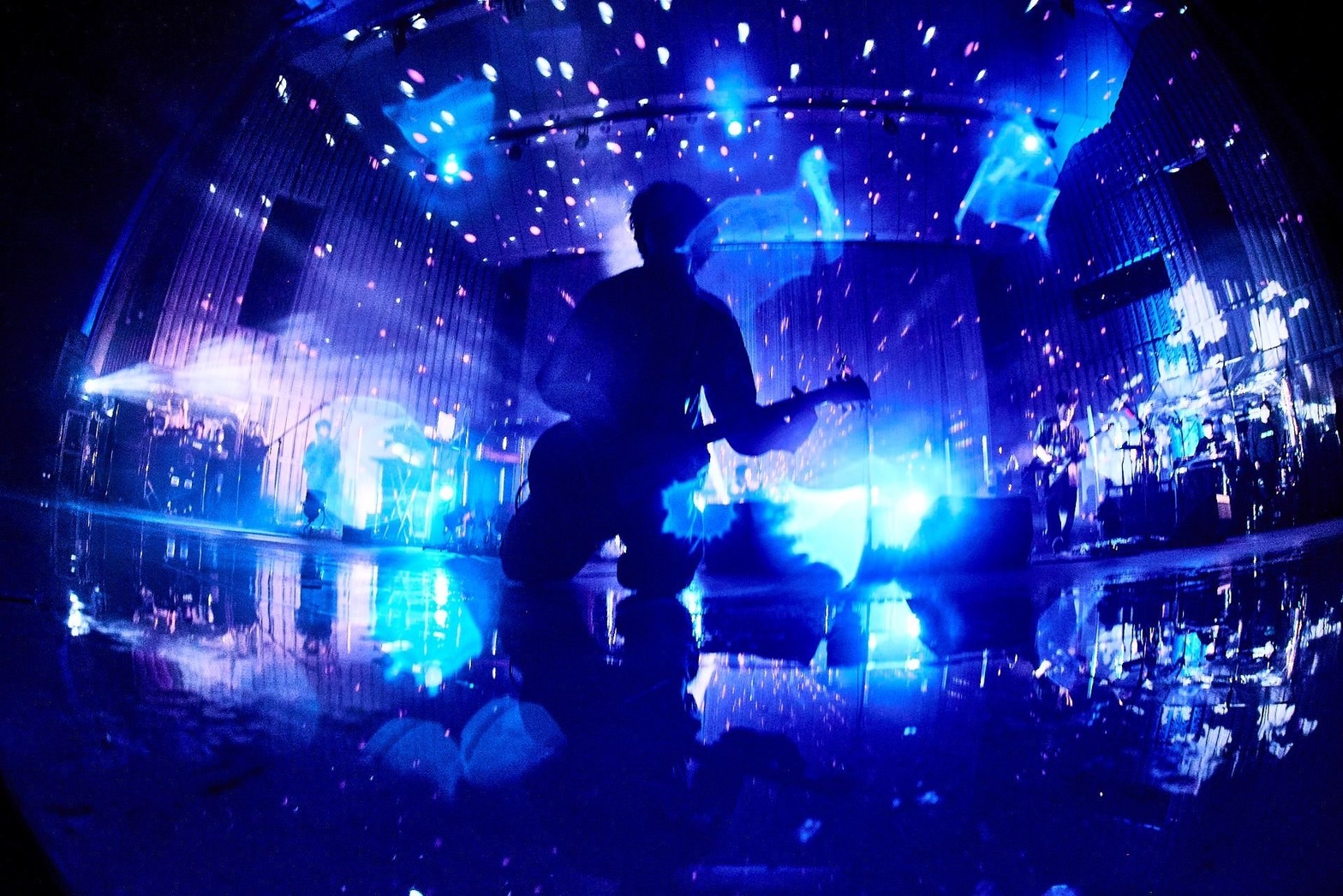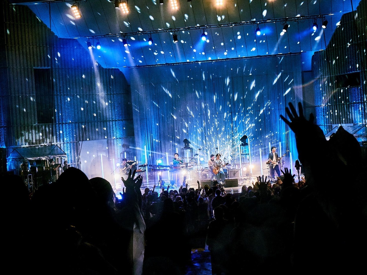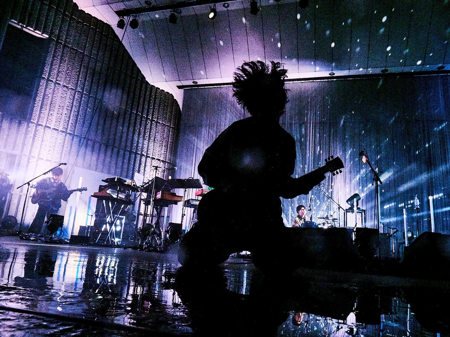 ライブ中盤では、事前に行なっていた「やってほしい曲」アンケートに基づいて、上位3曲を3位から演奏。エモーショナルに展開していく「零色」、豊かさと硬質さが共存するハイテンションナンバー「ワンドリンク別」、純真な音楽愛と感謝を綴ったミディアムチューン「 サンキュー・フォー・ザ・ミュージック」という活動初期の楽曲たちが、プロジェクションマッピングの効果も相まって、鮮やかさと新鮮さを携えて鳴らされた。ステージバックから、弧を描くように設置された天井に至るまで、細部に渡って映像が投影されていたのだが、平面ではないからこその立体感と迫力と美しさが、オーディエンスの感動を誘う。