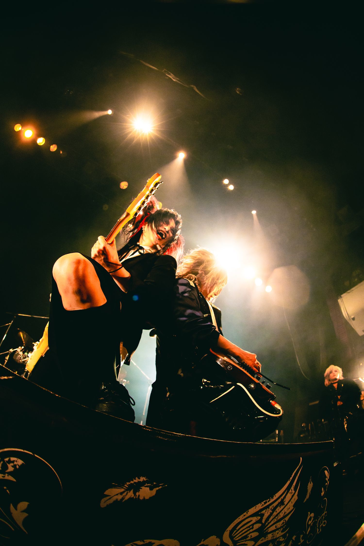 そして、このあと中盤に差し掛かったタイミングでは、なんと千秋がギターを持って突如乱入することになり、昴いわく“5人のRoyz”での「JOKER」を派手にブチあげてみせ、場内はよりいっそう沸き返ることになったのだ。「千秋とは同じ関西の出ということもあって、お互い波長が合ったんやろな。仲良うさせてもらってます。ほんまはちょっとくらい憎まれ口のひとつでも言うたろかなと思ってたりしたけど(笑)今はこうしてお呼ばれされたことを純粋に感謝してます。ありがとう。(中略)この2マンに向けて千秋といろいろ話してたのは、たった1回こっきりの2マンだけじゃなく、ここからヴィジュアル系というシーンの中で何かを動かしていく切っ掛けに出来たら良いなっていうことだったんやけど、俺らは本気でそう思ってるから。これからもよろしくお願いします!」(昴)