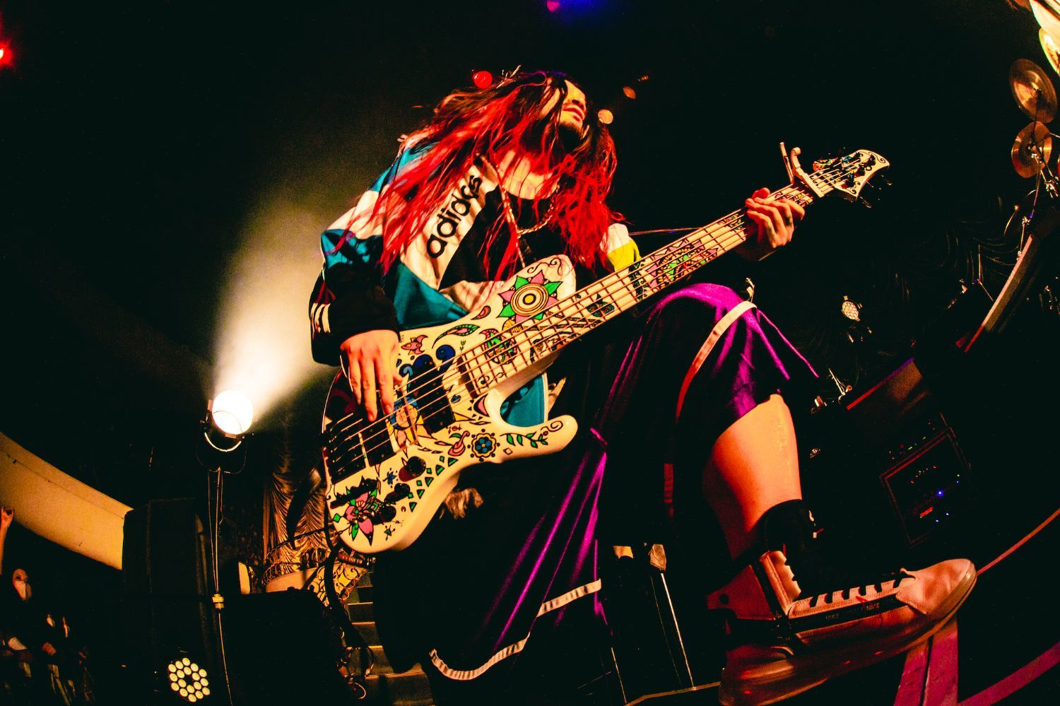 では、そんなRoyzをこの場に召喚した側のDEZERTは果たしていかなる応戦ぶりをみせていったのかというと。まず、彼らが1曲目としてこの空間に投下したのは重苦しさと痛みが音と詞から沁み出してくる「「絶蘭」」で、なんでも風の噂によるとリハーサル段階ではもともと全く別の曲がここで演奏されることになっていたとかいないとか…。DEZERTとしては、当初のプランよりもさらに“勝ちに行く”ための選択をしたのだろうか。確かに、次いでの「カメレオン」と「胃潰瘍とルソーの錯覚」への緩急ある流れも鮮やかであったし、何よりそのあとに奏でられた最新シングル『The Walker』のカップリング曲「モンテーニュの黒い朝食」で聴けたバンドアンサンブルは、ドラマー・SORAの叩きだす肉感的なリズム、ベーシスト・Sacchanが聴かせた懐の深いフィンガリングプレイ、ギタリスト・Miyakoが響かせる軽妙かつモダンなカッティング、フロントマン・千秋による絶妙にラップ要素をコンフュージョンさせた歌と、各人の発する音の編みあわせぶりが実に秀逸で、そこには10年以上のキャリアを詰んできたバンドだからこその粋な風情が備わっていたように思う。
