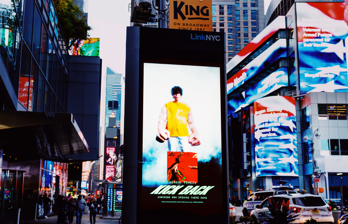 また、11月18日より開催中の「Anime NYC」では、会場内ビジョン、及びNYCミッドタウン周辺のサイネージに「KICK BACK」MVを使用したSPOTが上映。米津玄師「KICK BACK」がNYCをジャックしている。