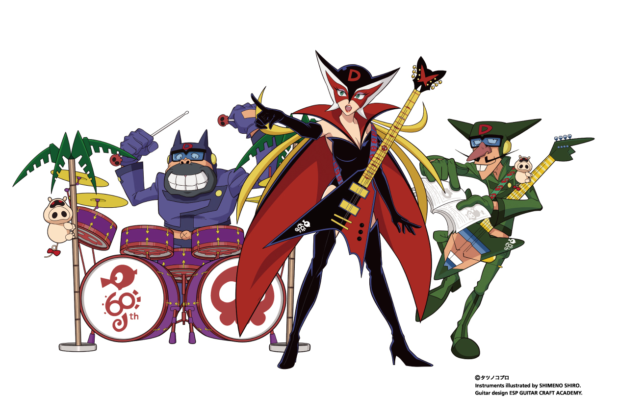 また、同フェアでは購入者対象の応募抽選キャンペーンも開催。 作画を元に実際に制作したドロンジョギターが当たるほか、2023年1月9日(月・祝)Zepp Diver City (TOKYO)でささきいさお、堀江美都子、水木一郎、山本正之、影山ヒロノブらのゲストが出演する『タツノコプロ創立60周年記念特別公演 Tatsunoko 60th Legends』に20名を招待する。