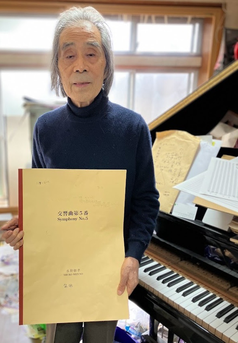 現役88歳、作曲家・水野修孝、完成した交響曲第五番のスコアとともに