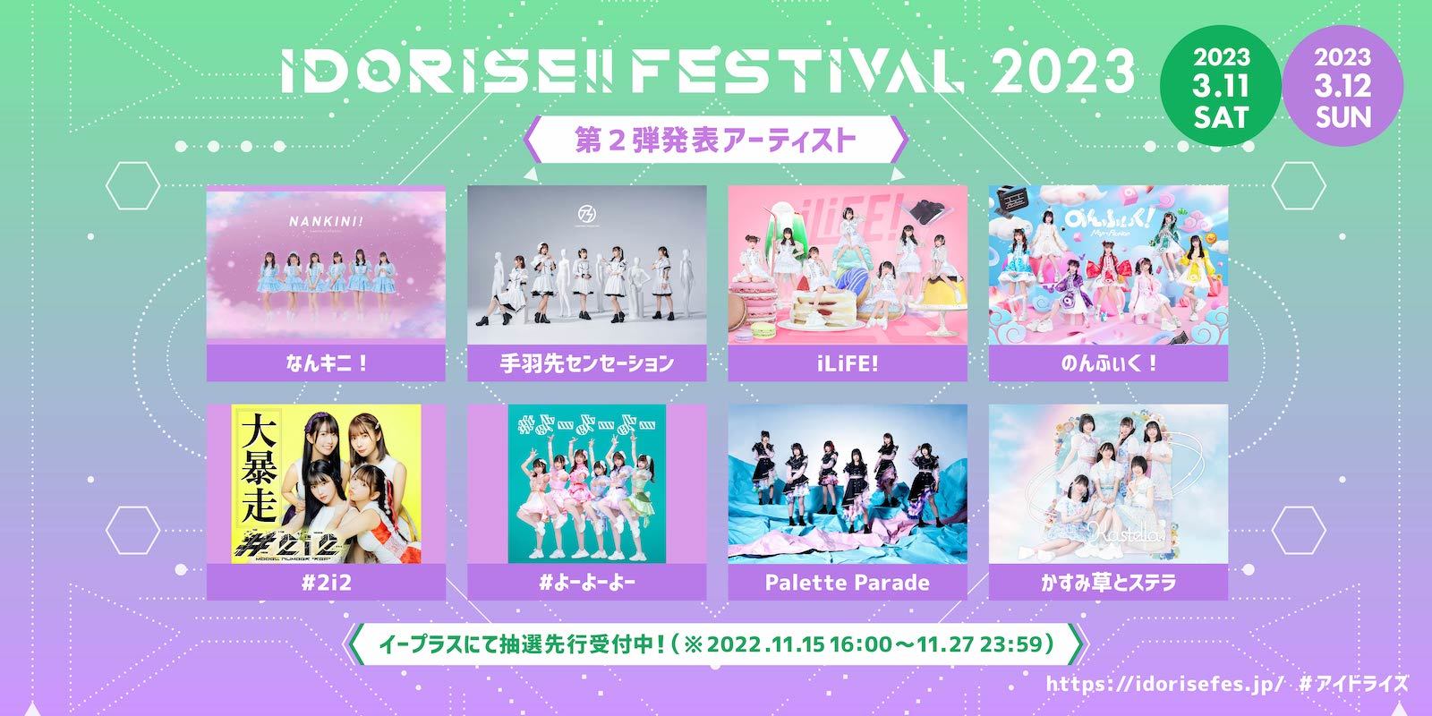 2023年3月11日(土)・12日(日)の2日間、東京・渋谷で開催される『IDORISE!! FESTIVAL 2023』の第2弾出演アーティストが発表された。