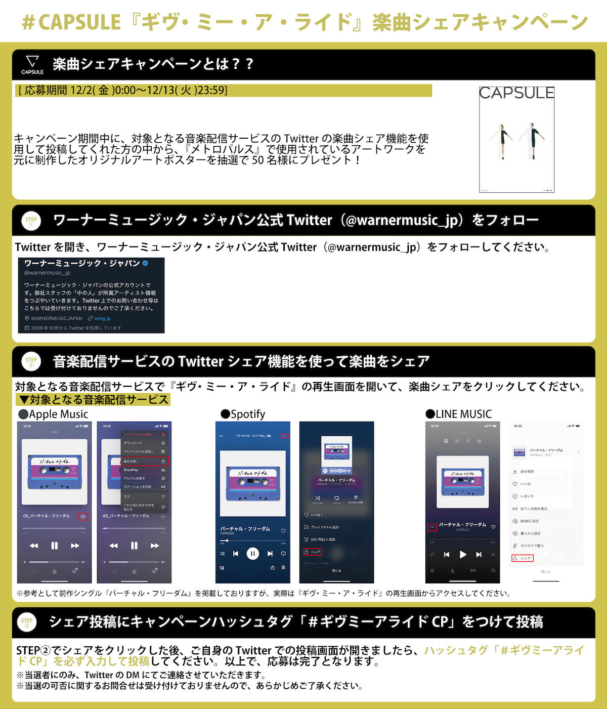 アルバムリリースを記念して、ワーナーミュージック・ジャパンの公式Twitterでは、抽選で50名にオリジナルアートポスターがプレゼントされる楽曲シェアキャンペーンを13日まで開催中。さらに、アルバム購入特典として音楽ライターの中村義響(TYP!CAL)によって執筆されたライナーノーツがもらえる追加キャンペーンも決定、ライナーノーツはなくなり次第終了の特典になっている。