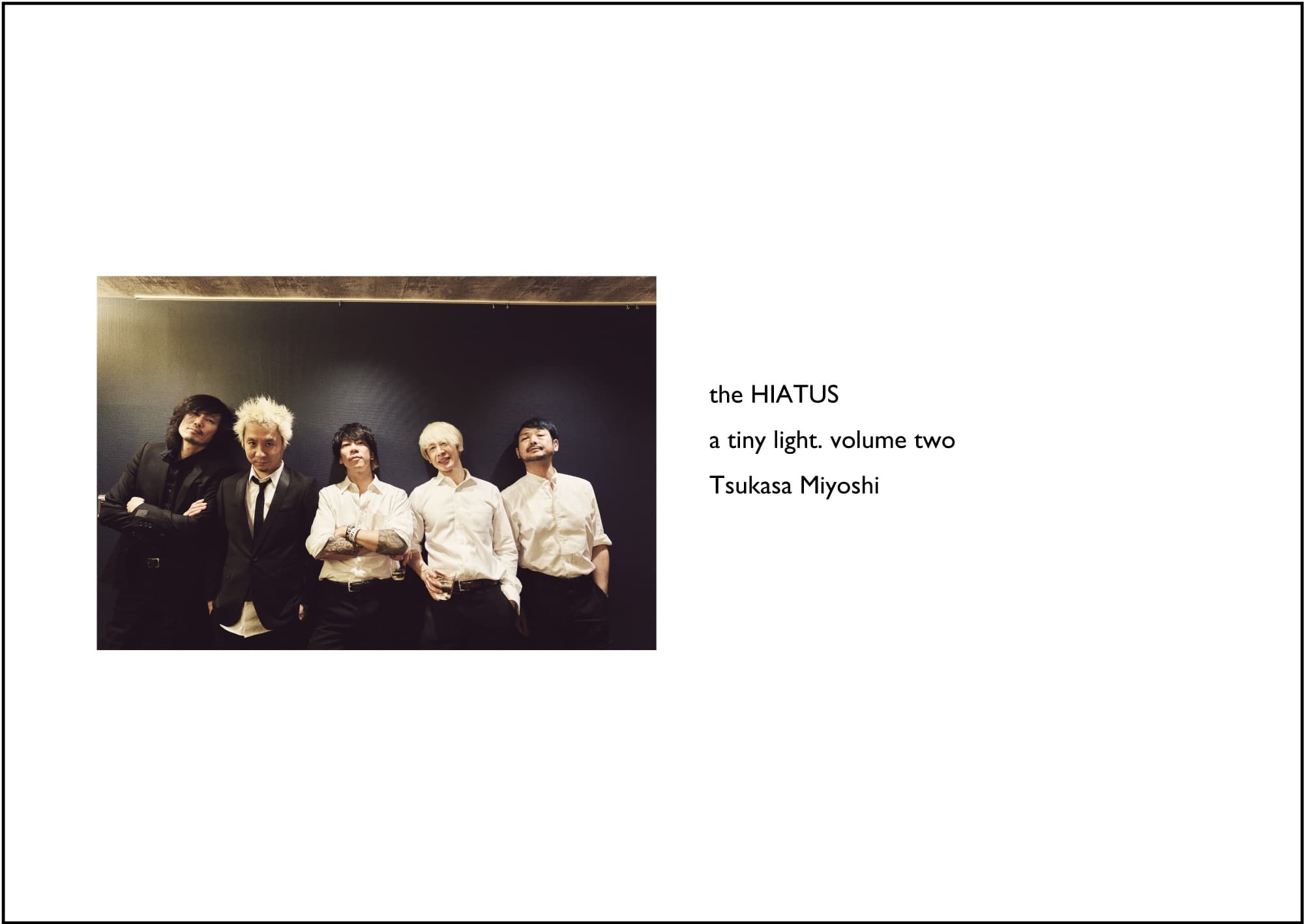また、カメラマン三吉ツカサ撮影によるthe HIATUS写真集『a tiny light volume one』『a tiny light volume two』の2冊同時発売も決定。昨年の『COUNTDOWN JAPAN 21 / 22』のライブ写真や今年1月に行われた『Jive Turkey vol.6』へ向けてのリハーサルの様子、オフショット、ライブの模様をセットリストに合わせた形で構成した写真など、さまざまな姿が収められている。Showcaseが運営する写真販売サイト「Showcase Prints」にて、12月2日(金)18:00より販売スタート。