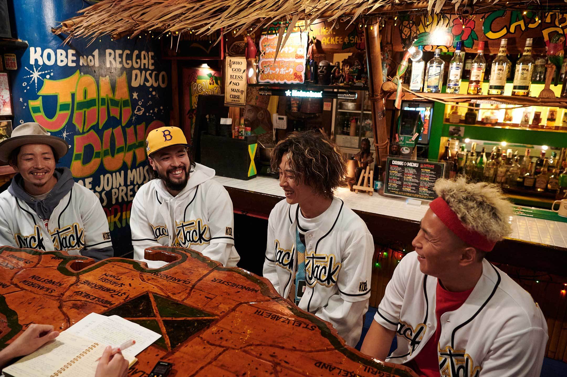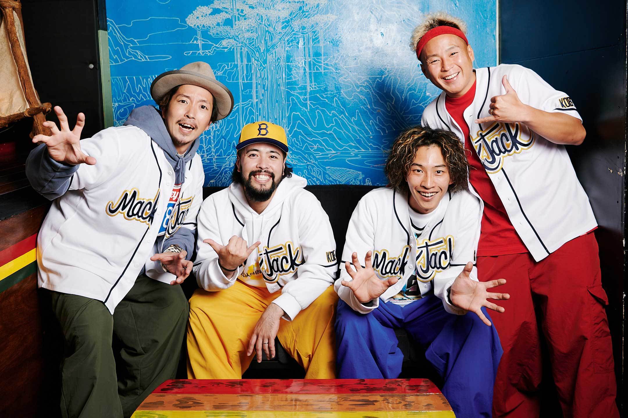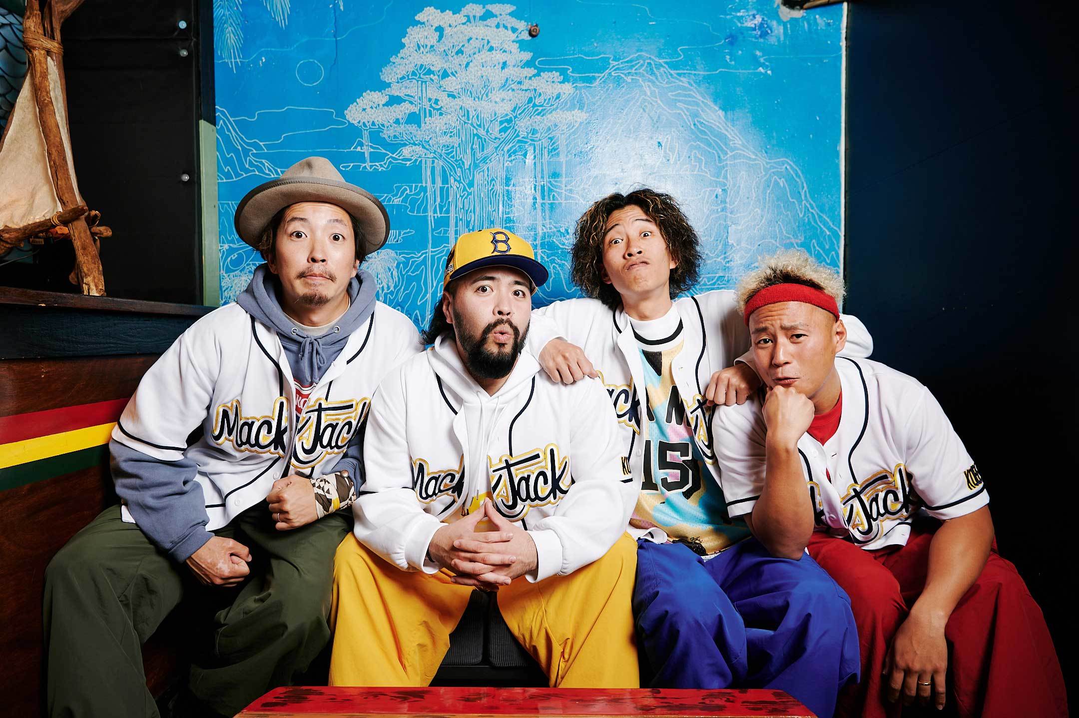 メンバー全員が元球児の、神戸発レゲエグループ・MACK JACKが、12月2日(金)にシングル「BAKA VIBES/翔んでWi-Fi (feat.ジャガ先輩)」を配信リリースした。さらに12月16日(金)には大阪アメリカ村・BEYONDで、18日(日)には神戸・太陽と虎で、ゲストにレゲエDeeJay CORONAとシンガーソングライターの近石涼をそれぞれ迎えたツーマンライブ『バッチこ〜い!2マン! 2デイズ!』を開催。今回SPICEでは、初登場の彼らにインタビューを敢行。ニューシングルとツーマンライブに向けた想いを語ってもらった。取材地は、神戸三宮にあるレゲエクラブ・JAMDUNG(ジャムドン)。このお店は、メンバーがデビューする前に約4〜5年修行したというレゲエバーで、今年で25周年を迎えた。ボブ・マーリーのライブ映像が流れる彼らの馴染みの場所で、メンバーのALI(アリ)、M.C.L(ミッチェル)、CHAI(チャイ)、JAGA-C(ジャガシー)の4人にたっぷりと話を訊いた。写真からもわかるように本当に仲の良い4人。取材も終始賑やかで楽しい時間となった。彼らには一度会うと好きになってしまう魅力がある。高校時代に叶わなかった甲子園の土を踏む日が、今から楽しみだ。